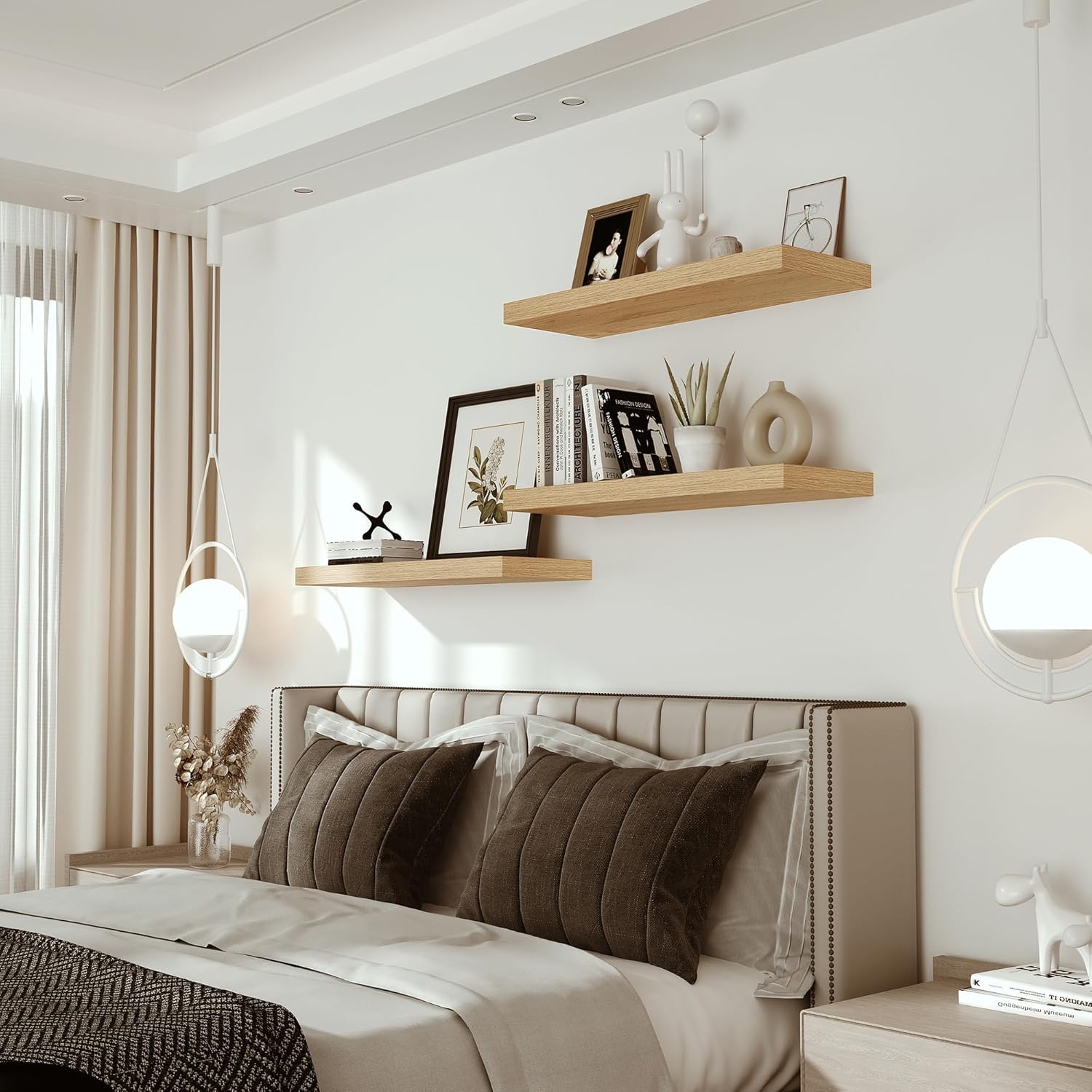 - Extra Deeper & Thicker Wood Floating Shelves - Each wall shelf measures 23.6"W x 9.2"D x 1.5"H. Our shelves for wall decor create a variety of storage spaces to organize small items on your desktop or counter.and they blend seamlessly with the rest of other decor and provide a stylish way to organize and display items.It would highly recommend for succulents, small items, and collectibles, statues and trophies, or anything you would like to display