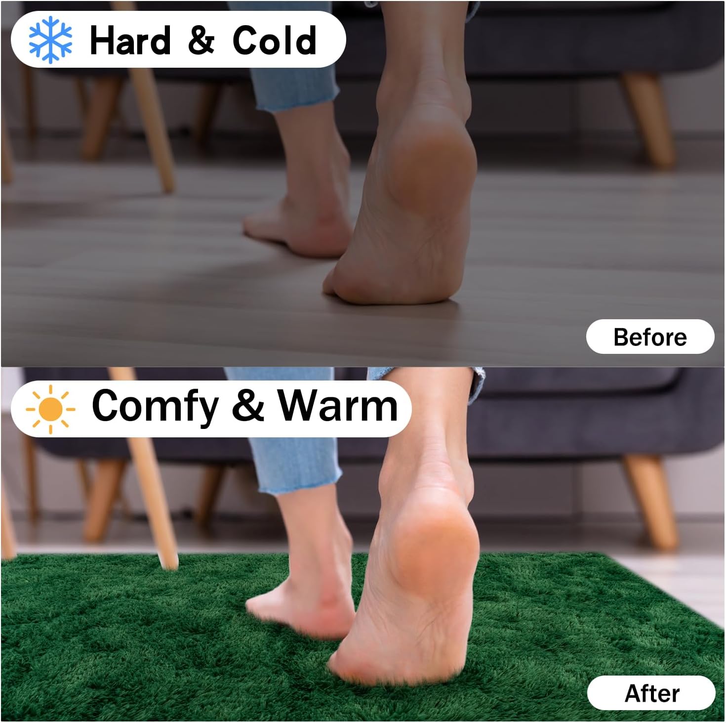 - Non-slip Rug--Enhanced Stability:Don't overlook the importance of slip resistance! The Rezutan fuzzy rug features a specialized non-slip backing with dot-molded granules, providing a firmer grip on any type of flooring. Additionally, the tight edging process ensures minimal shedding, maintaining the rug's fluffy appearance, makeing it a practical choice for any space. Perfect for kids and pets playing on the fine throw rugs for living room.