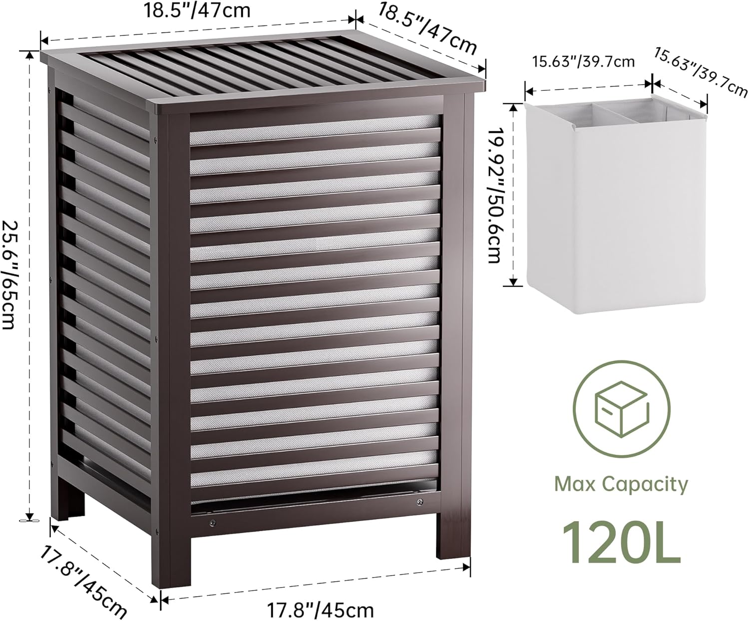 - β LARGE CAPACITY YET SPACE SAVING: This spacious double washing hamper measures 18. 5''L x 18. 5''W x 25. 6''H (47 x 47 x 65 cm), up to 120L, roomy enough to hold lots of clothes, towels, toys, etc. Boasting a narrow vertical design for space efficient storage in your bedrooms, bathroom, dorm