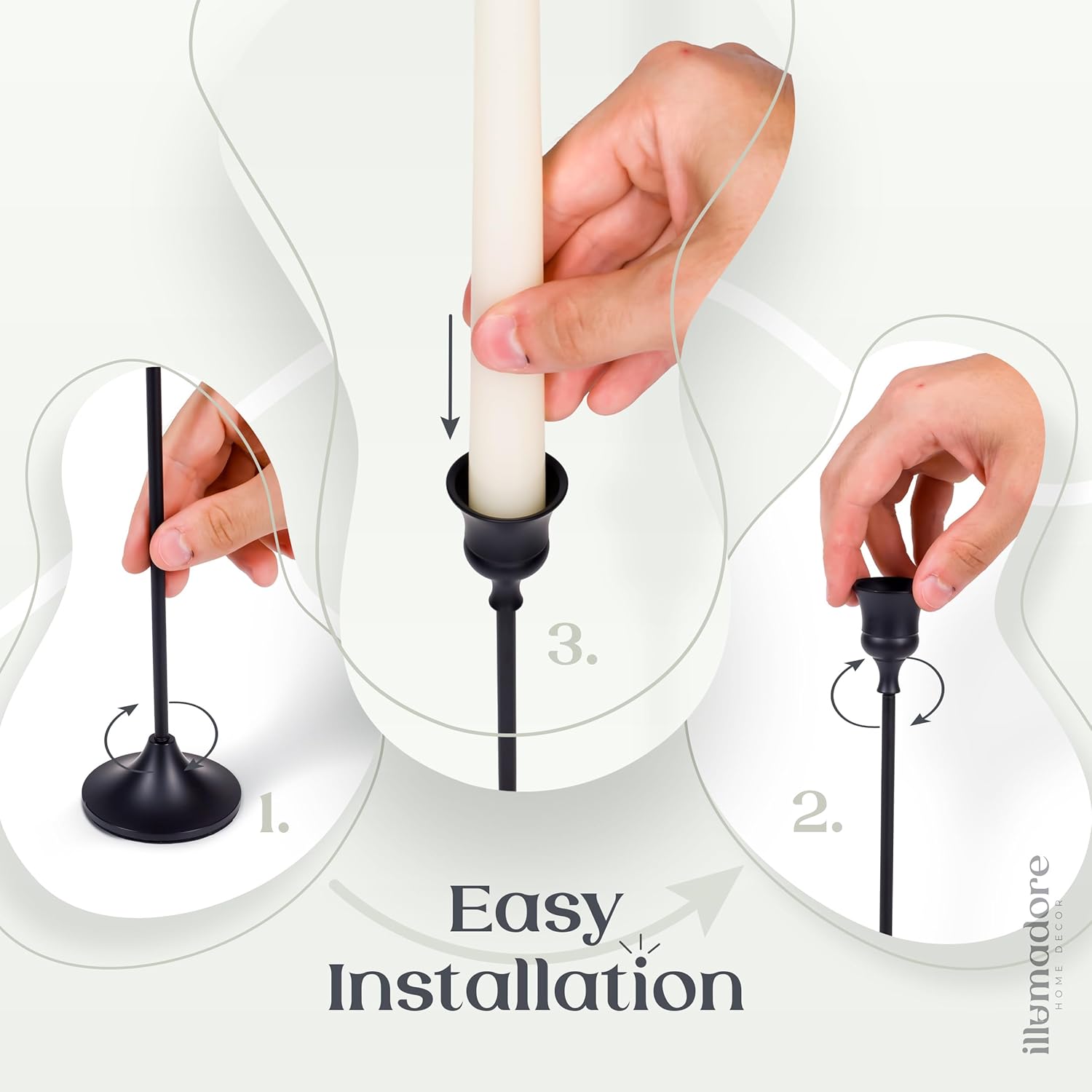 - ELEGANT AND PREMIUM DESIGN! Illumadore Candlestick Holders bring a warm, romantic ambiance with their stylish, stunning design, making them the perfect choice to enhance and elevate your décor.