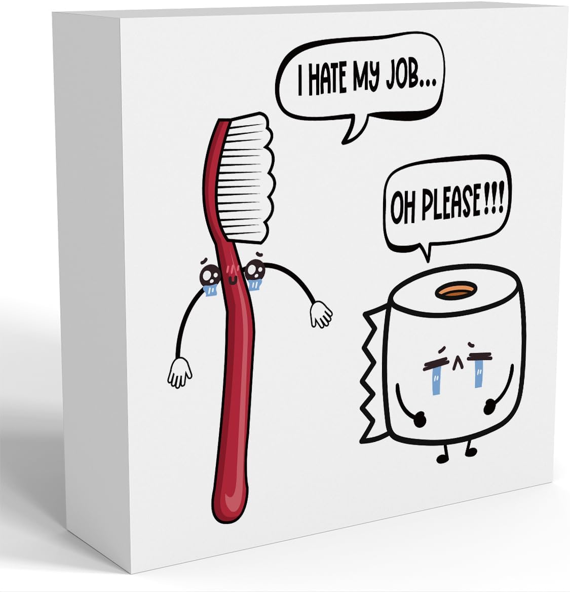 Funny Bathroom Decor, Funny Bathroom Wall Art, Black and White Bathrooms Decoration Decor for Shelves, Wooden Box Decor Sign for Home Farmhouse Office Living Room Table
