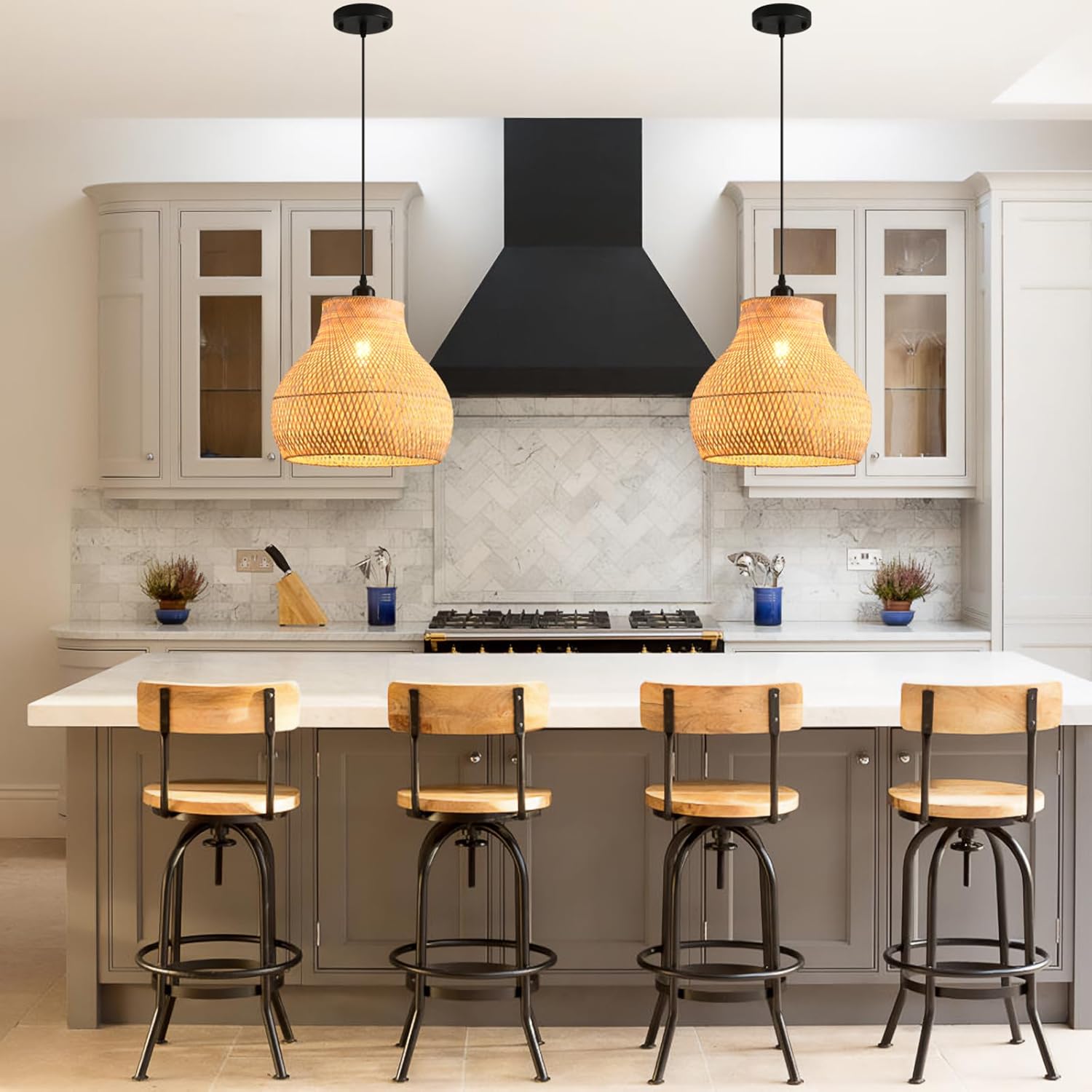 Bamboo Pendant Light 13.39" Hand Woven Rattan Pendant Light,1-Light Bamboo Rattan Ceiling Hanging Light,for Living Room Kitchen Dining Room Farmhouse