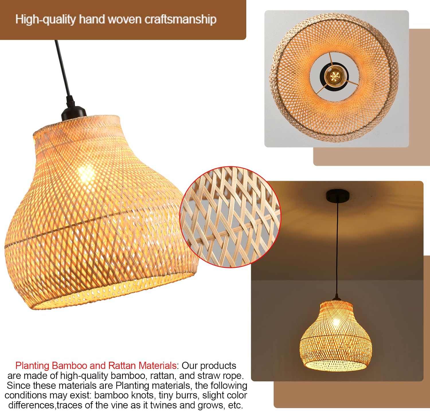 - 【UNIQUE DESIGN】This pendant light is made of natural bamboo. It adopts a double-layer design and is shaped like a oval. When the light is transmitted through the wicker shade at night, the pattern it casts on the wall is very beautiful