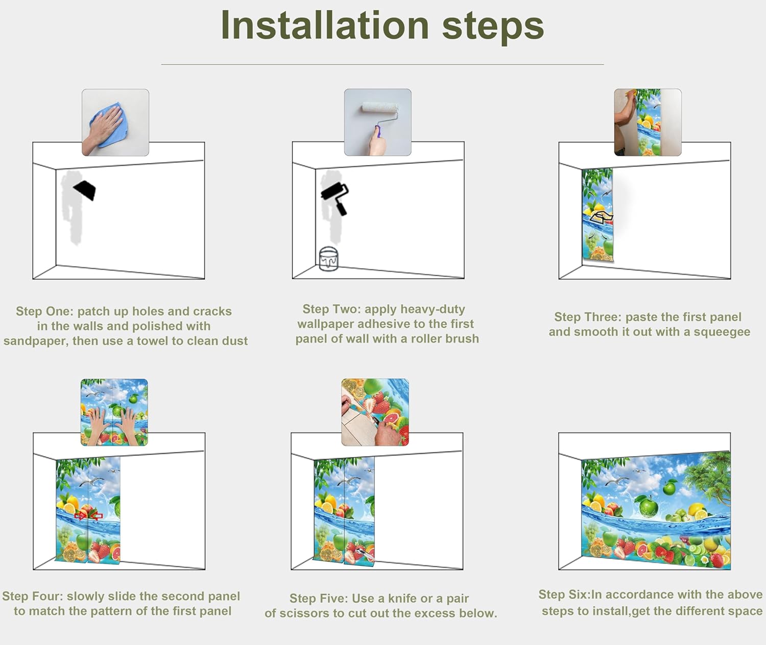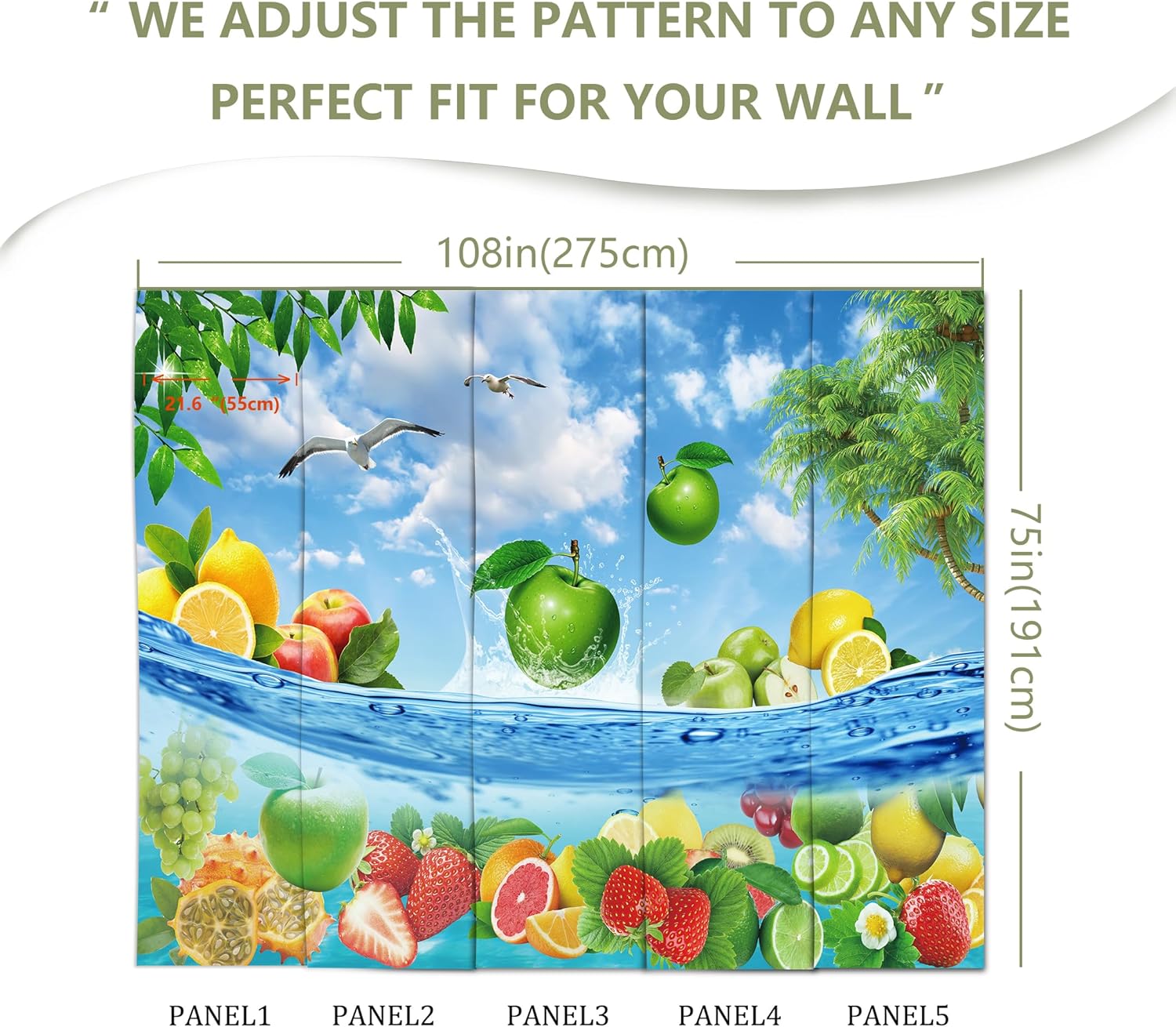 - MATERIAL - Fruit murals for walls is made of premium silk material. Ecological printing with lightfast, UV resistant lasting colors. Durable and waterproof, fadeless and odorless, non-toxic and eco-friendly.