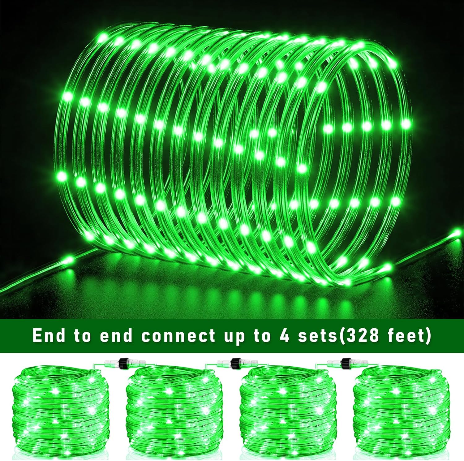 100FT 300 LED Rope Lights Outdoor, Plug in Christmas Rope Lights for Indoor with 8 Modes, Waterproof Connectable String Lights for Outside Patio, Deck, Garden, Pool, Stair, Camping Lighting - Green