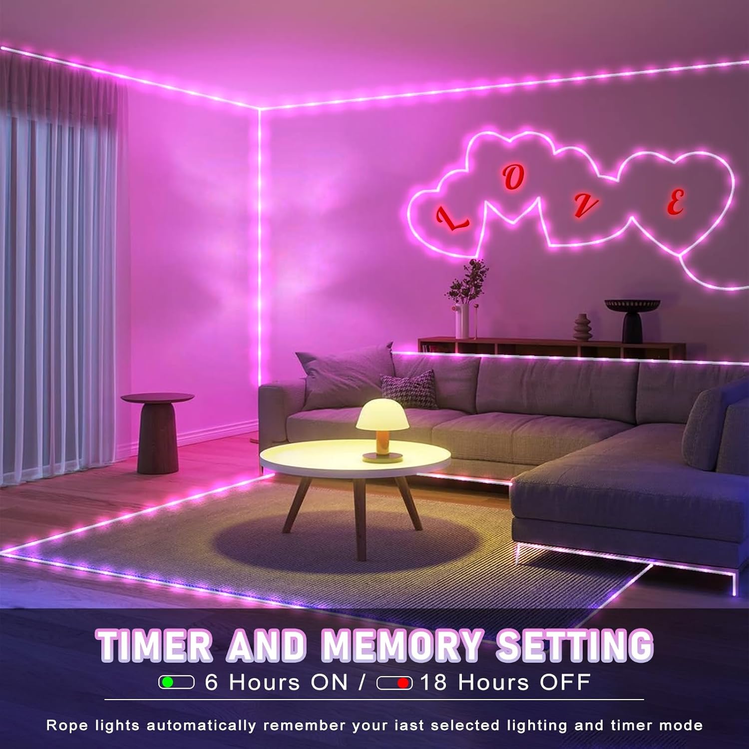 - 【Connectable Outdoor Rope Lights】- Our upgraded rope lights feature has 100ft lighting length, 6.6ft lead wire, total 106.6ft length. And the spacing between each LED bead is 4 inches, the light is bright but not harsh. The rope lights indoor can be connected end to end for up to 4 sets to illuminate your home and create a warm and romantic atmosphere!