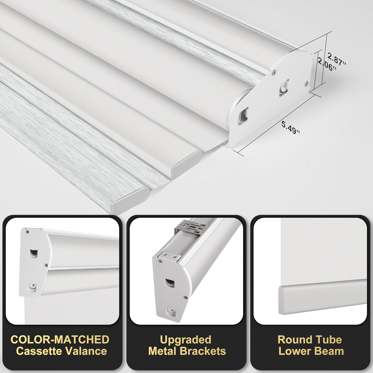 - FREE STOP CORDLESS SYSTEM:The cordless double roller shade prioritizes safety with a cordless design designed for families with small children or pets.You just need to pull down or push up to stop at any position you want. COLOR-MATCHED CASSETTE VALANCE:The hidden installation of the cordless roller blinds can effectively reduce installation gaps, reduce light leakage.The color of the cassette valance is same as the fabric color,making the day night blinds more beautiful after installation.