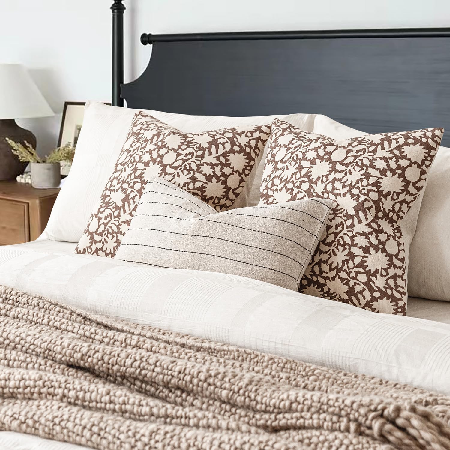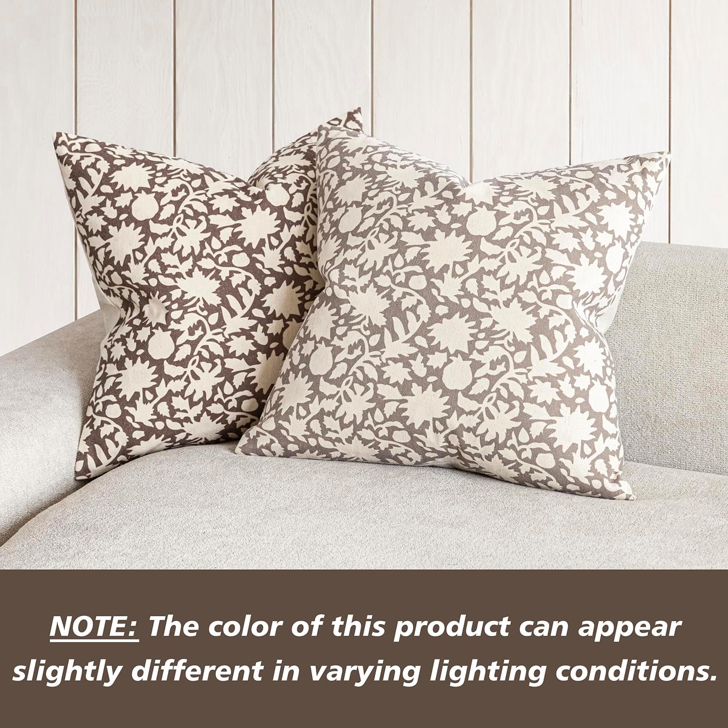 Foindtower Set of 2 Decorative Neutral Floral Throw Pillow Covers Accent Farmhouse Cushion Covers Boho Vintage Pillowcase for Couch Sofa Bedroom Living Room Home Decor Outdoor,24×24 Inch,Brown