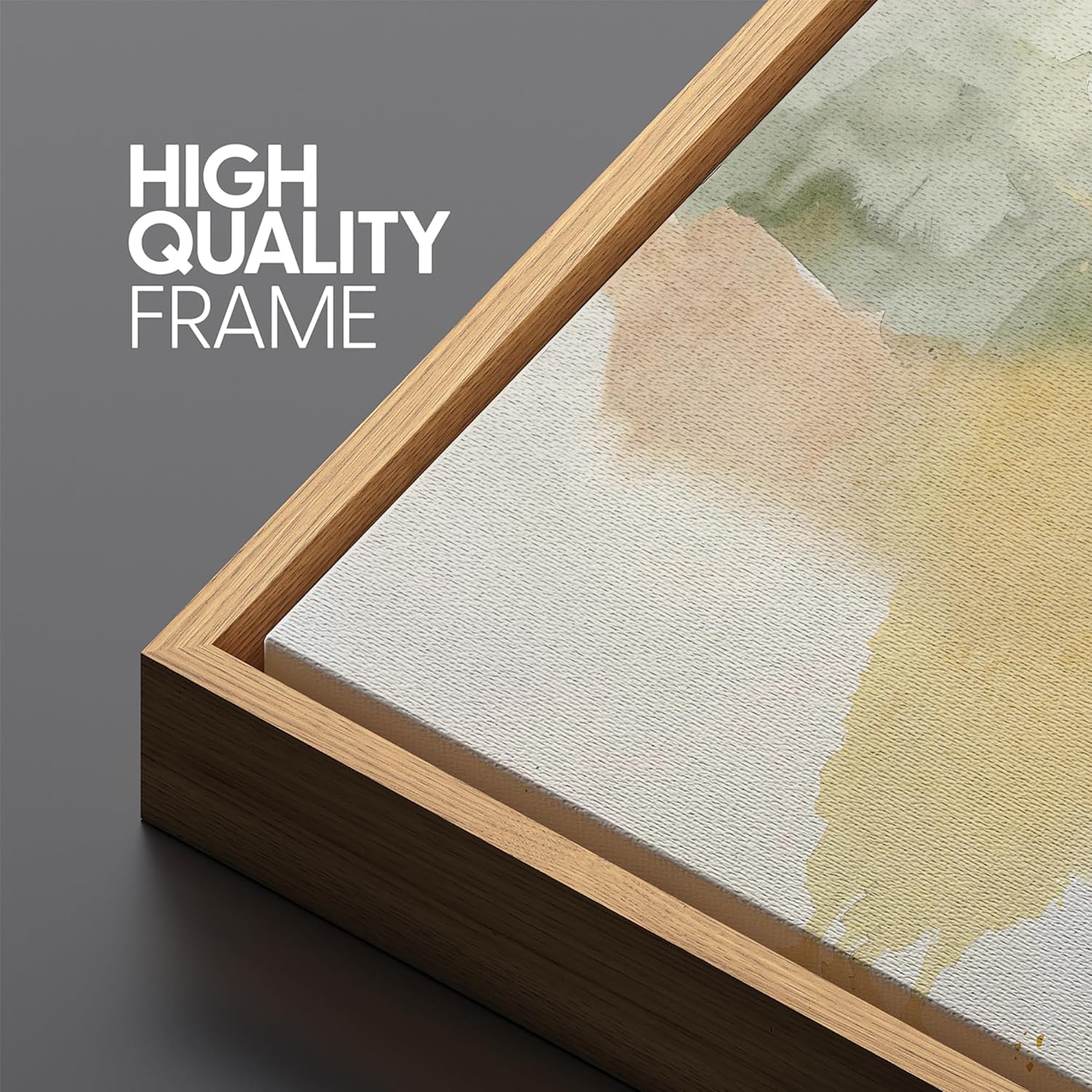 MUDECOR Large Framed Canvas Print Wall Art Serene Watercolor Landscape in Green and Yellow Tones Antique Retro Fine Art Illustrations Decorative Colorful for Bedroom - 60"x20"