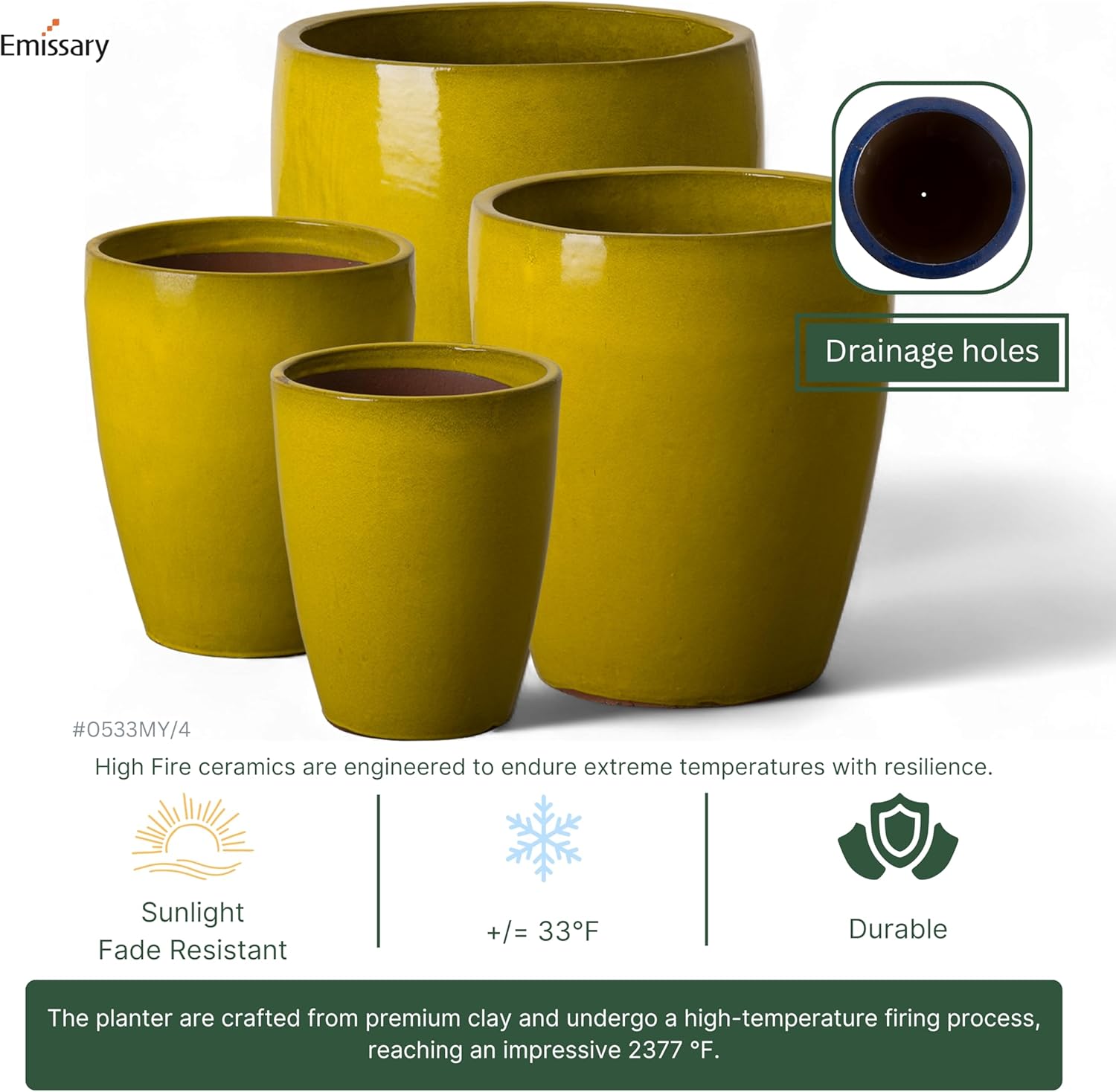 - Warm Mustard Yellow Color with a Glossy Glaze Finish: Enhances Indoor and Outdoor Spaces with an Elegant Sophistication