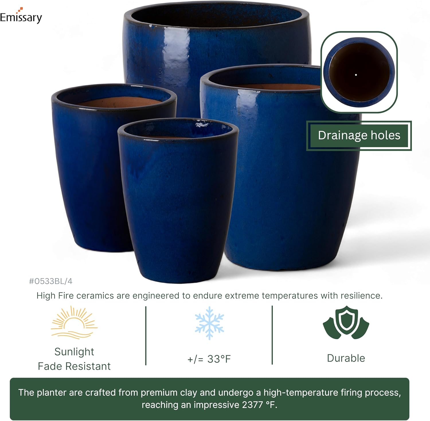 Emissary Home and Garden Bullet 11.5 in. Blue Ceramic Round Planter (11.5 in. L x 11.5 in. W x 14 in. H) with Drainage Hole