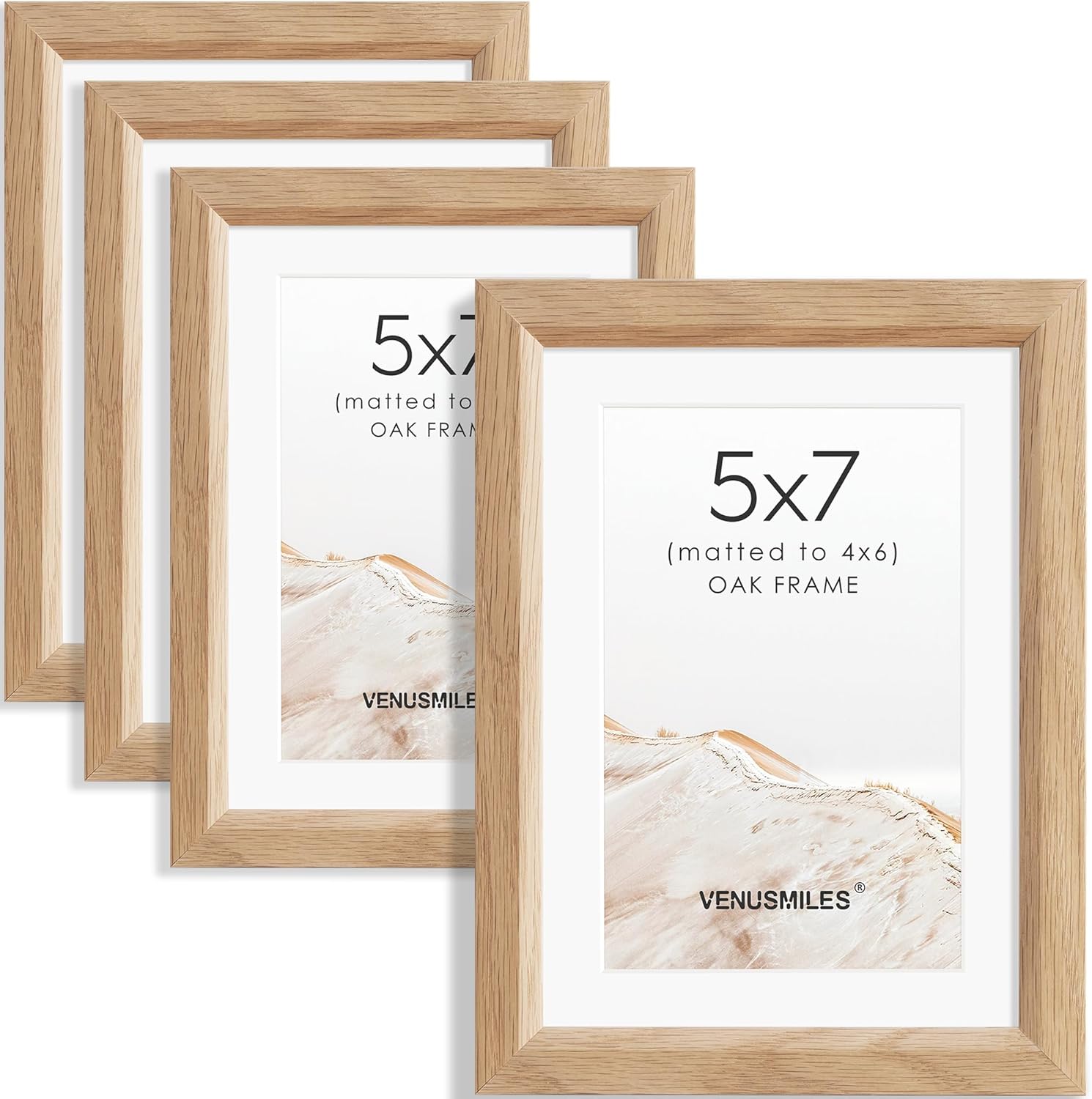 5x7 Picture Frame Set of 4 Natural Solid Oak Photo Frames with 4x6 Removable Mat Wall Hanging Large Handcrafted Frame with HD Plexiglass Wall and Tabletop Display Large Poster Frame