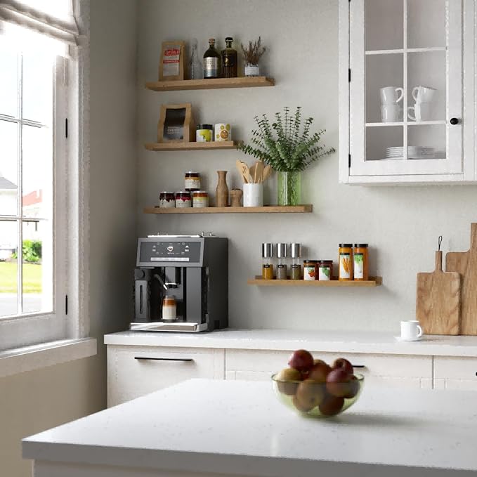 - Wide Application - These wooden floating shelves creates multi-functional storage space and various combinations to decorate your home. It can be spice racks to expand kitchen storage or bathroom shelves to add over-the-toilet-storage space for bathroom accessories or display shelves to show your plants, records, magazines, and trophy in the living room.
