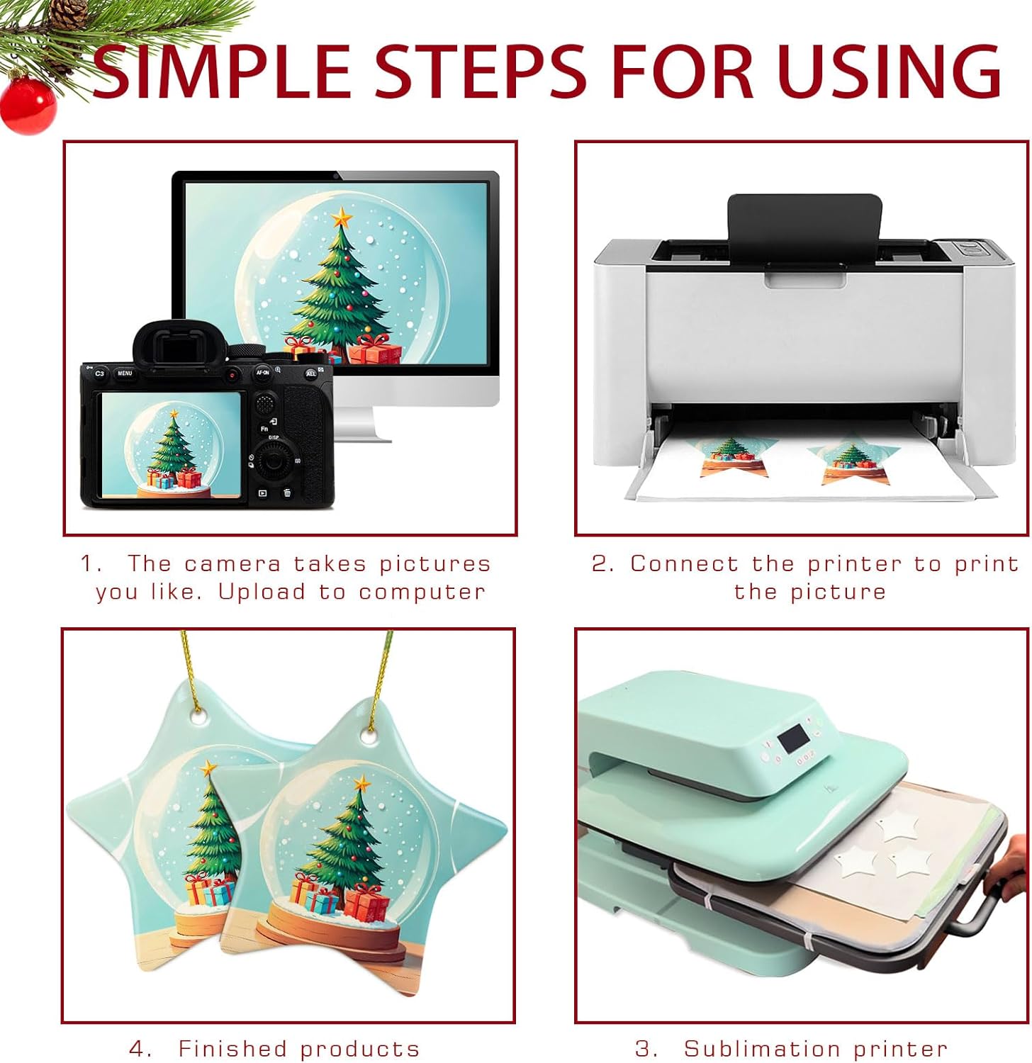- Clear Patterns Christmas Ornaments:Sublimation ornaments blanks have high quality sublimation coating on both sides of the surface, which can present excellent sublimation effect with bright colors and clear patterns. Sublimation Parameter Reference, temperature: 360℉, suggested time: 250 S, suitable for sublimation printing by heat press machine.