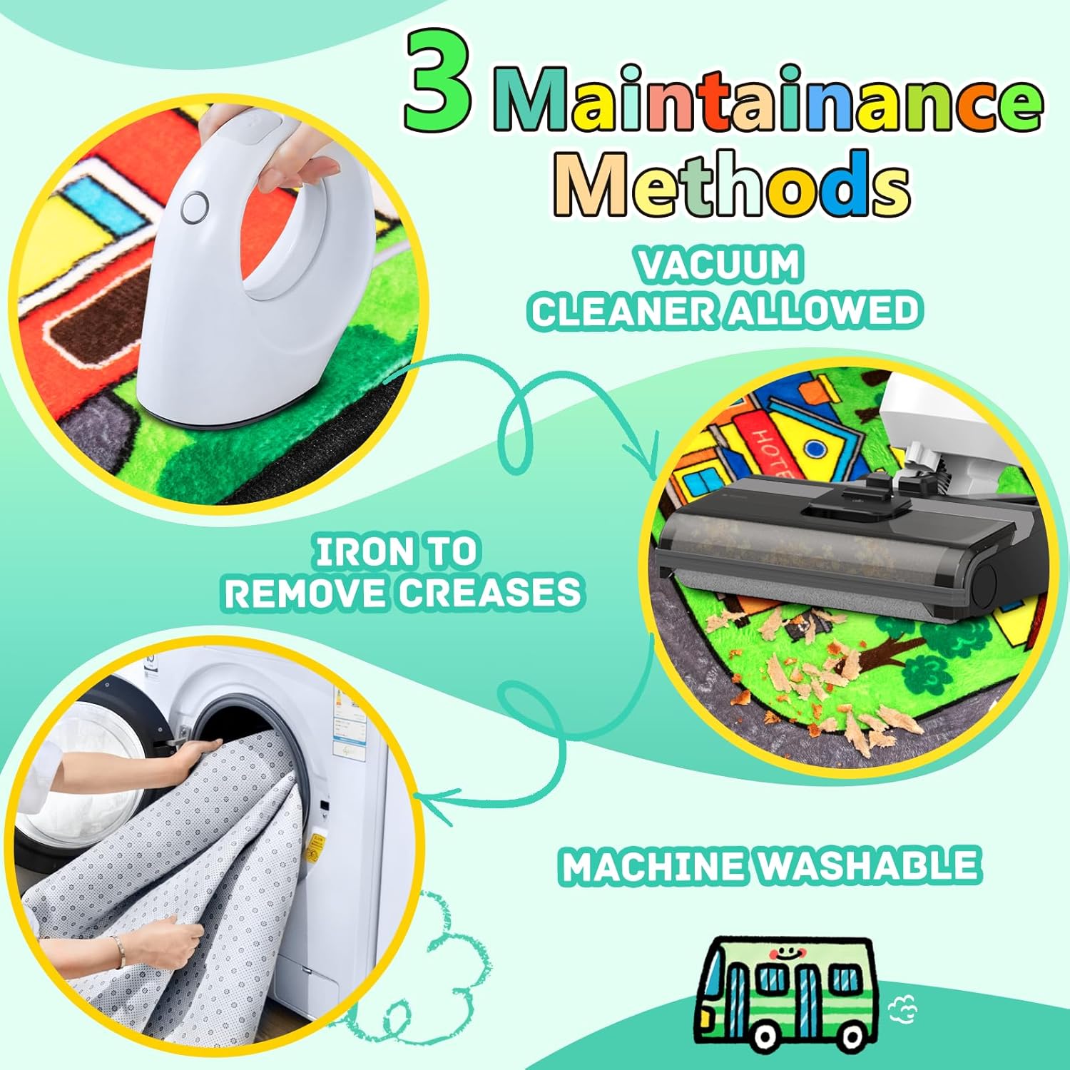 - [Machine Washable Kids Play Rug]This car rug for kids toy cars measures 3x5 feet/36*60 inches.0.4'' thick.Our mat is easy to clean by vacuum or machine.Perfect bedroom rug, living room rug, and playroom rug