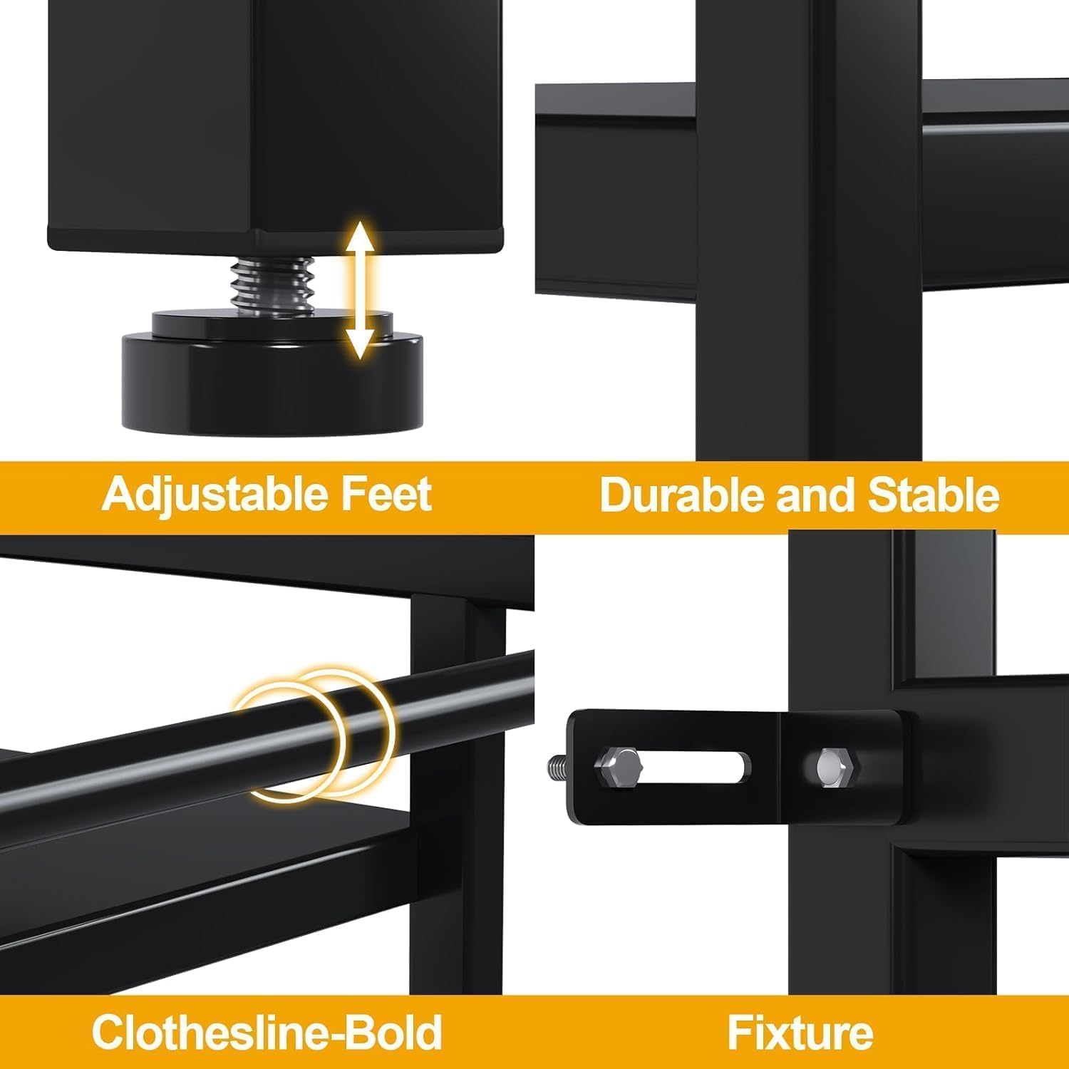 - Maximize Laundry Room Space: Featuring two spacious shelves with three dividers, this laundry room organizer helps you keep your essentials neatly sorted. The integrated clothes drying rod at the top provides a convenient space for hanging clothes, keeping your laundry area clutter-free.