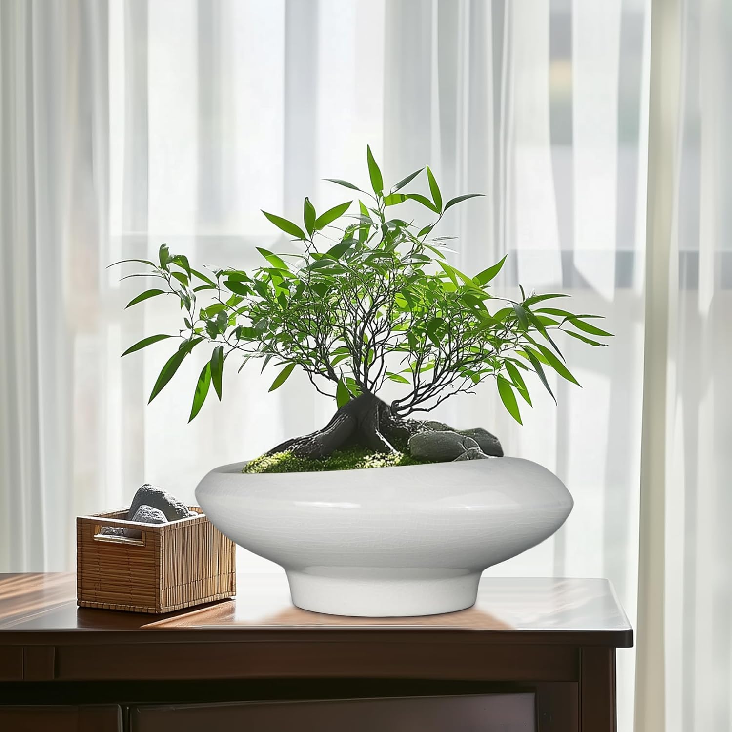 - Versatile Plant Compatibility: The ceramic planter is suitablie for various plants, including bonsai tree, succulents, orchid, cacti, aloes, money tree, zz plants, ivy, bromeliads, lemon tree, jasminum spp, mentha spp, mini ficus, pothos, and more