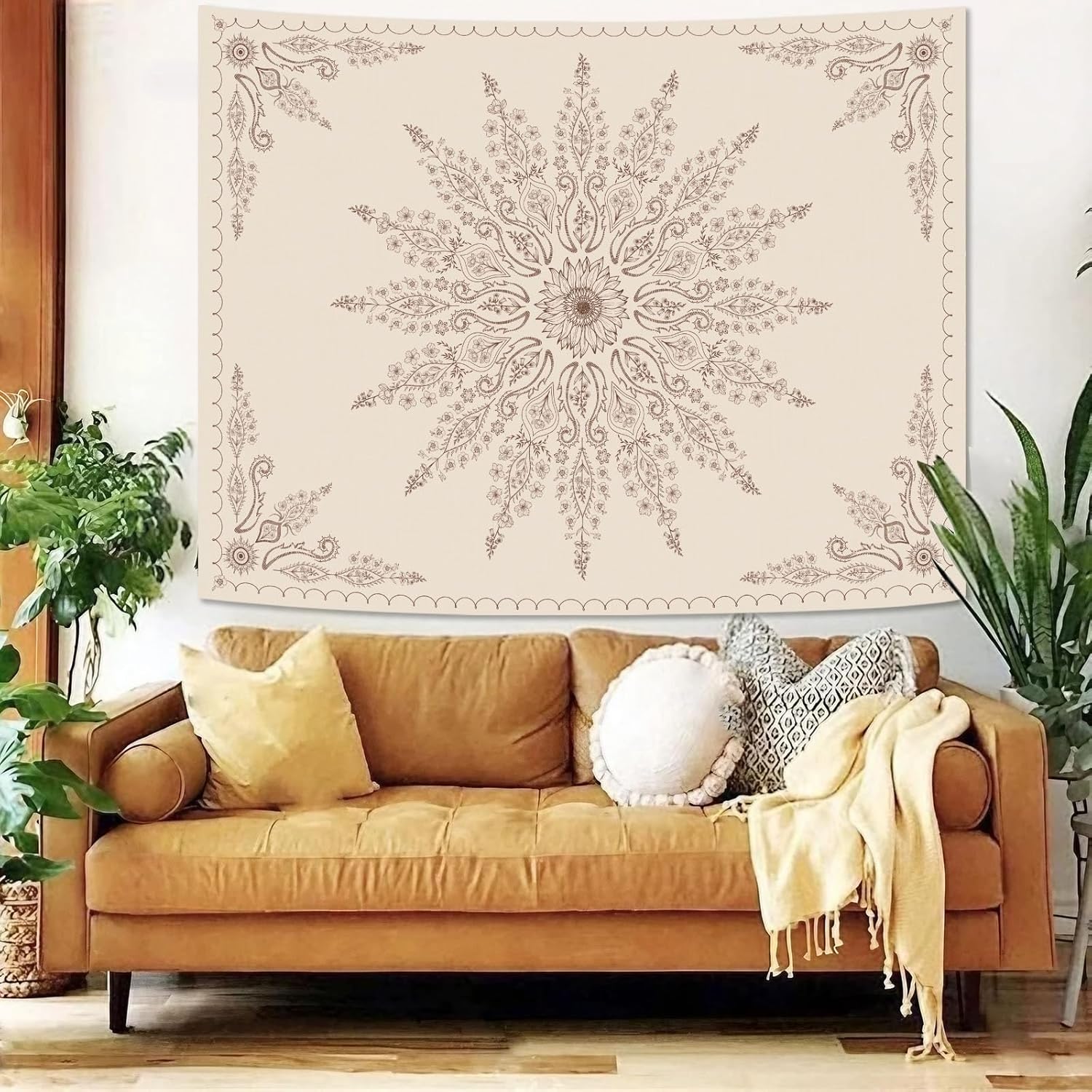 Fowocu Boho Floral Mandala Tapestry for Bedroom Aesthetic Bohemian Flower Wall Tapestry Beige Hippie Indian Small Tapestries Wall Hanging for Living Room Dorm Decor 60 x 44 Inch