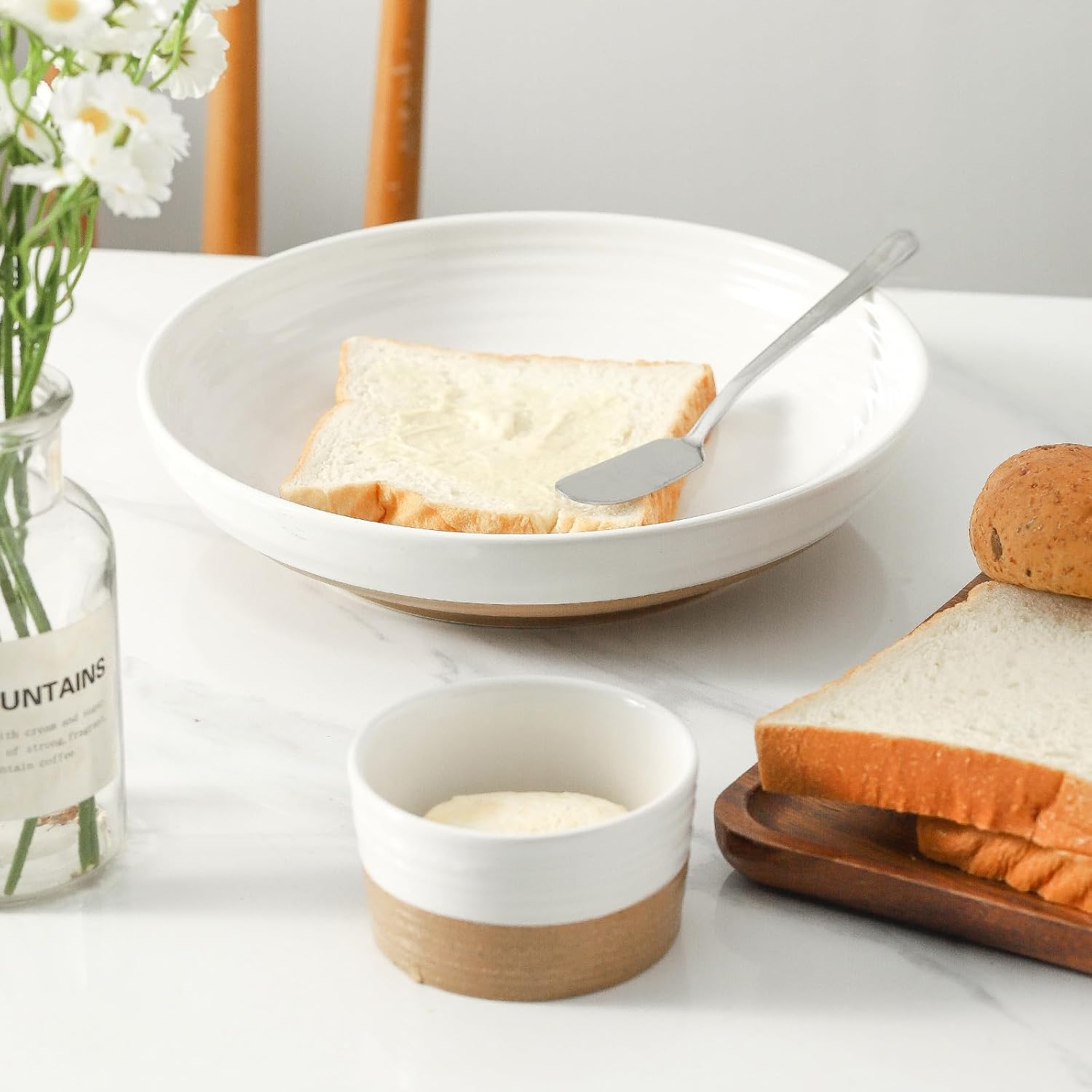 Pasta Bowls 32 OZ,Ceramic Salad Serving Bowls Set of 2,Large 8.7 inch Shallow Bowls Plates for Fruit,Noodle,Dinner,Soup Bowls for Christmas Gift,Dishwasher & Microwave Safe,White