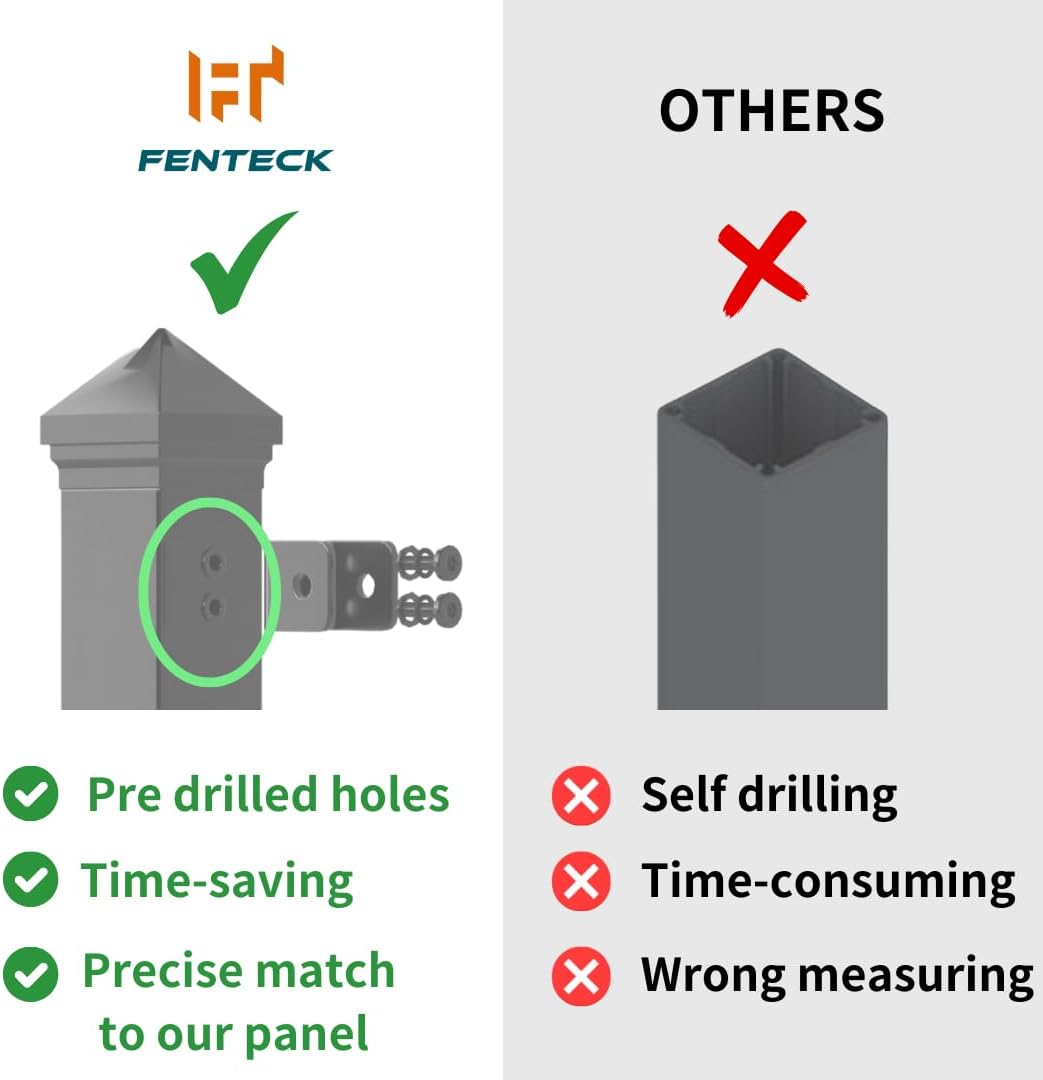 - COMPATIBLE WITH FENTECK PANELS AND GATES: Our posts are designed to work perfectly with Fenteck’s panels and gates, letting you build a complete fencing system for privacy, safety, and style. Whether it’s a home, garden, or commercial site, we’ve got you covered.
