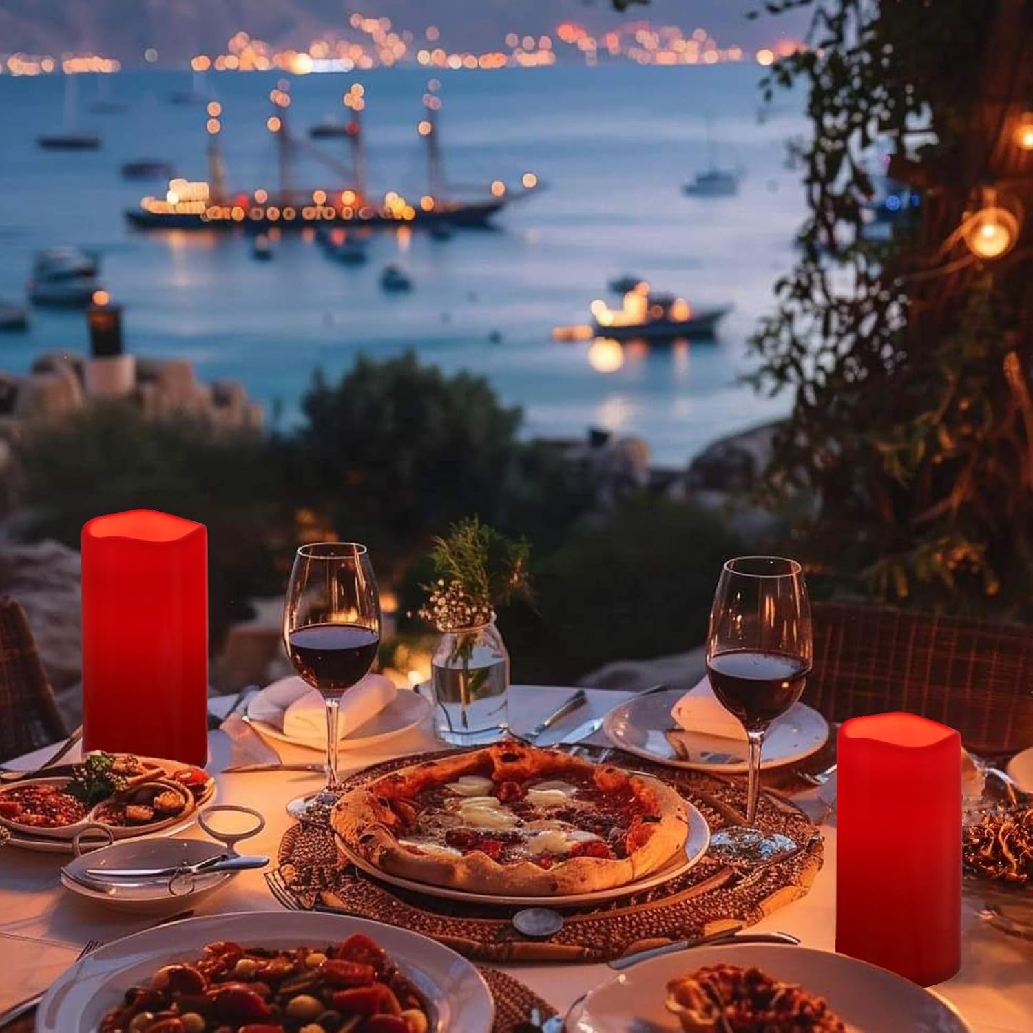 NURADA Large Waterproof Flameless Candles 6" 8" 10" x 4" - Outdoor Indoor LED Pillar Flickering Candle Battery Operated with Timer Remote for Patio Porch Christmas Decor - Red Set of 3