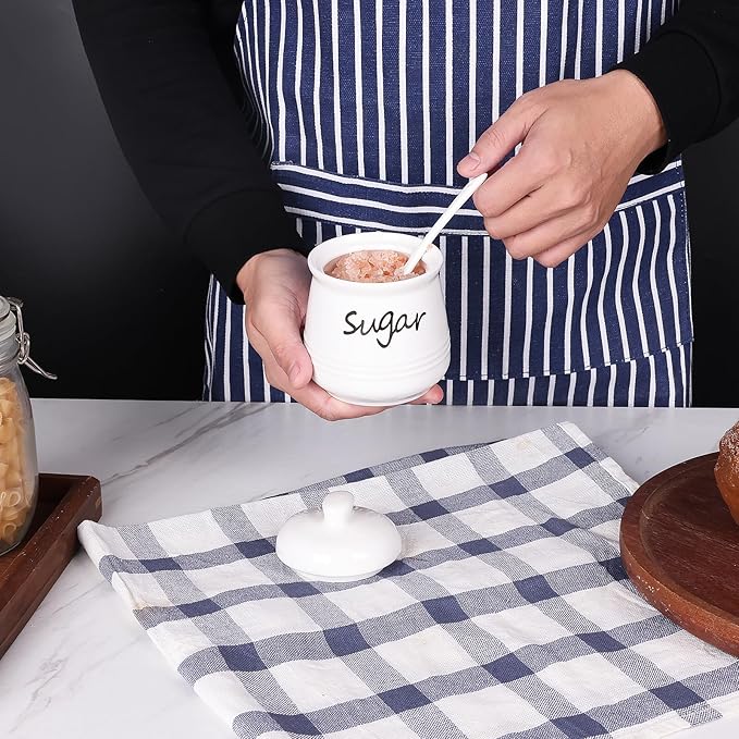 - DESIGN CONCEPT: This sugar bowl is equipped with a lid and a small spoon. The lid can keep your ingredients away from dust. There is a perfect notch on the lid for placing the spoon, so you donβt have to worry about placing the spoon randomly