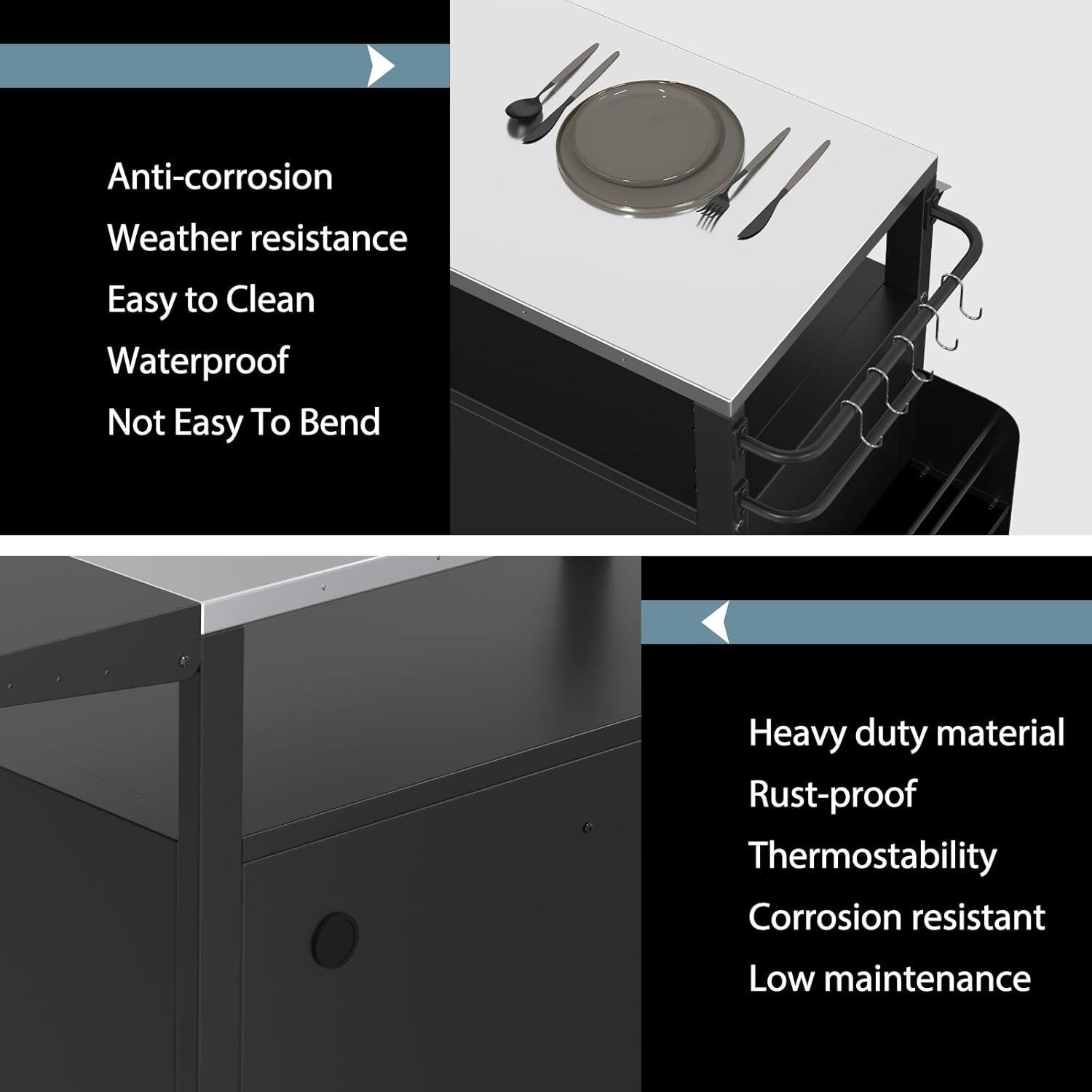 - LARGE DIMENSIONS: Open the second desktop on the side and you will get a tabletop measuring 50'' x 18.1'', provides an adequate workplace for most BBQ griddle grill or pizza oven, or preparing food aside when cooking. Besides the tabletop, you may also place food materials, seasonings, and accessories on the middle shelf.