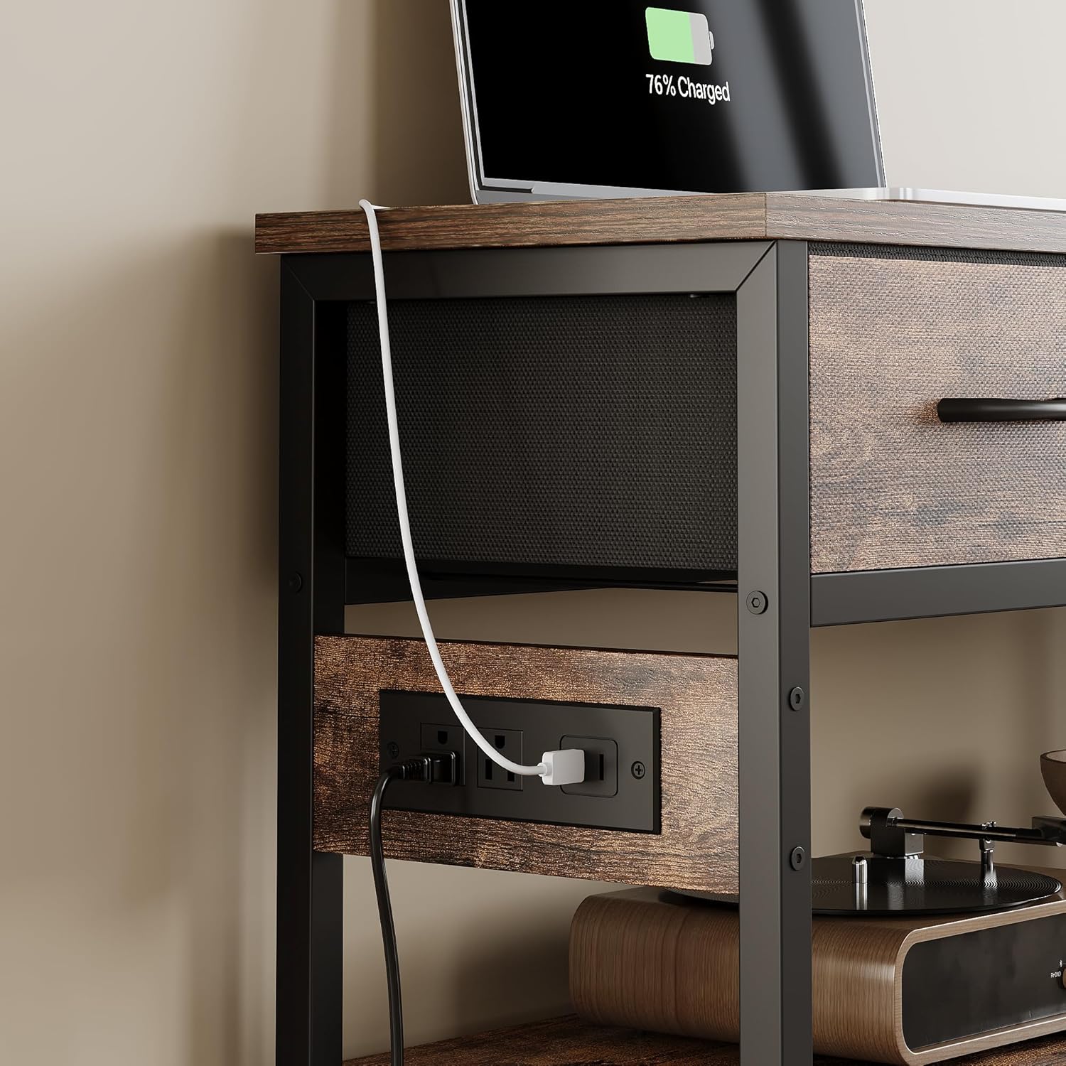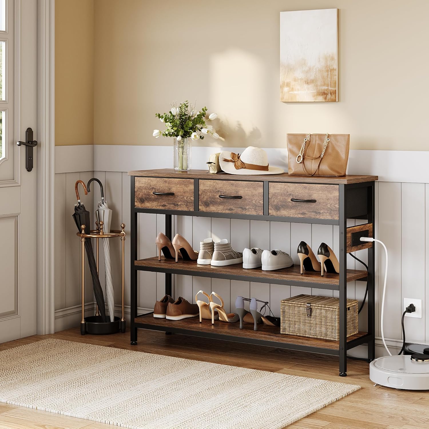 Lulive Entryway Table with Power Outlets, Console Table with 3 Fabric Drawers, Sofa Table for Living Room, Hallway, Couch, Foyer, Height Adjustable (Rustic Brown, 43")