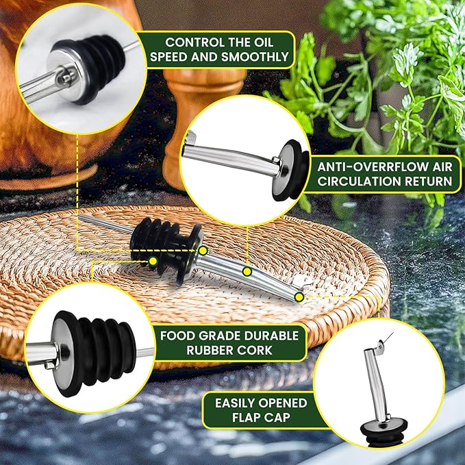 - 【EASY TO CLEAN】 : The Spouts Are Easy To Remove, Making The Oil Dispenser Easier To Clean. After Adding The Oil In The Bottle, You Need To Wipe The Mouth Of The Bottle, And After The Cap Is Inserted Into The Mouth Of The Bottle, You Need To Turn The Stopper To Make The Stopper Less Likely To Come Off