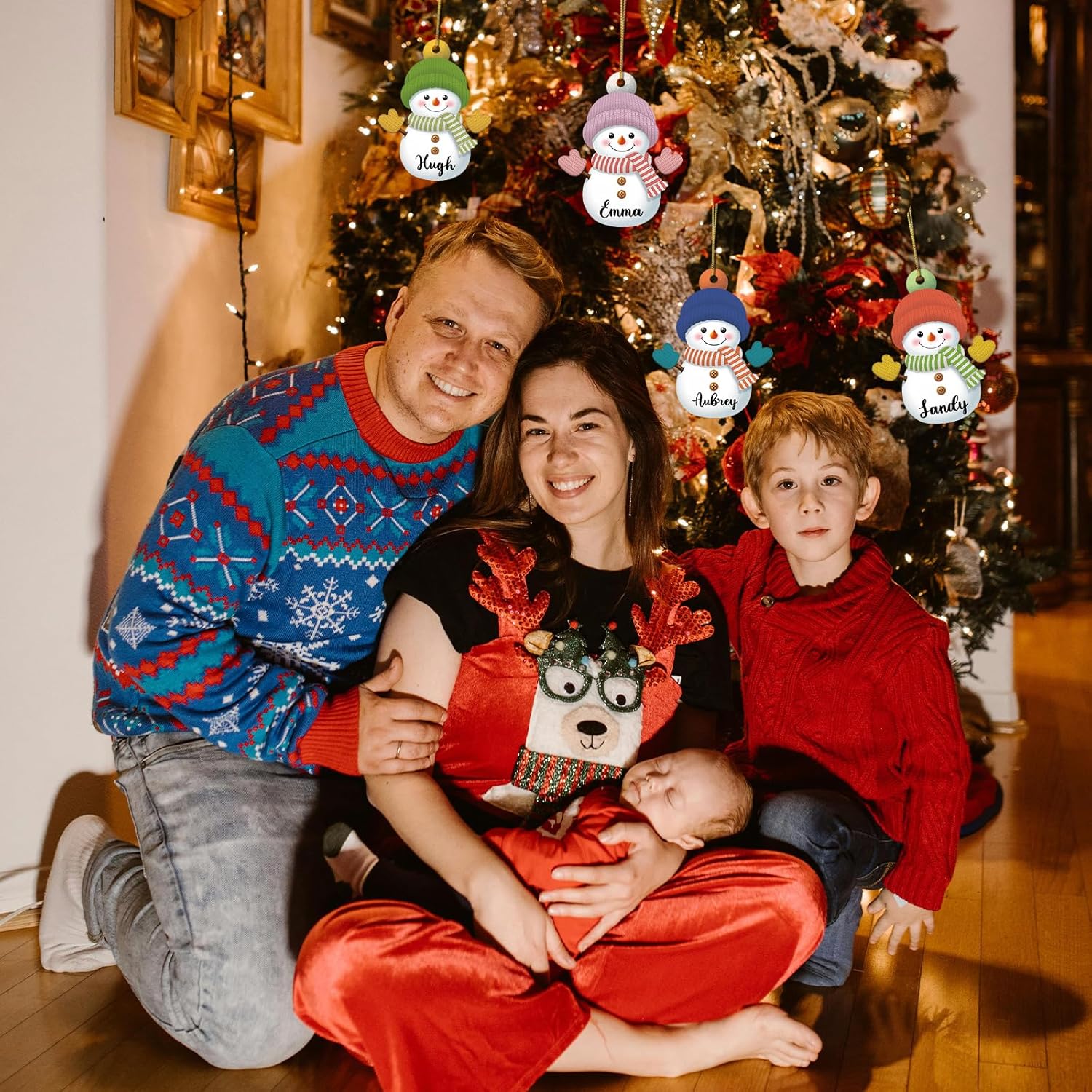 7PCS Personalized Christmas Ornament 2025, Custom Snowman Family Ornament with Name Photo Acrylic for Xmas Tree Decor Customized Hanging Gifts