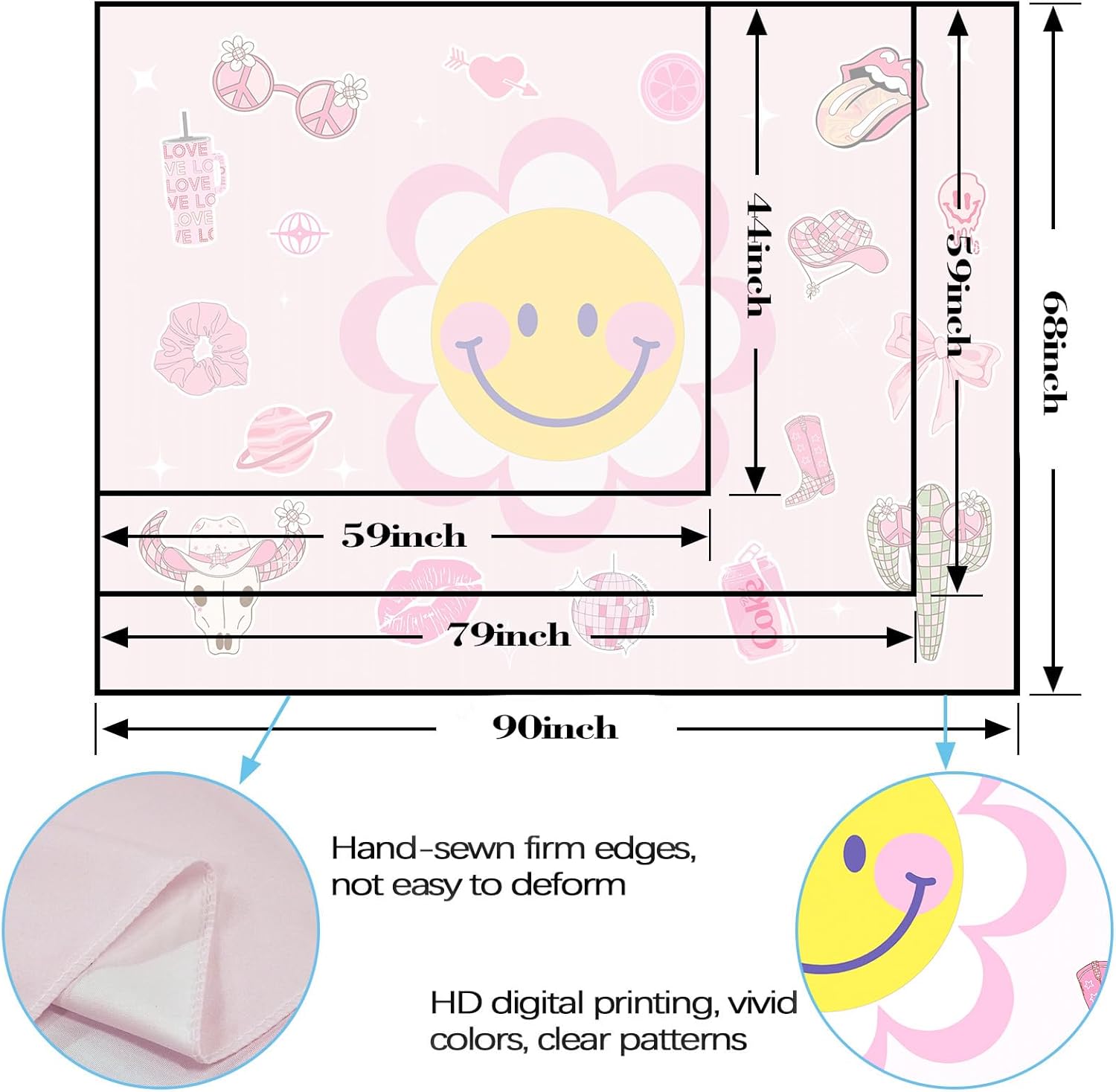 Lunerfex Y2K Tapestry Pink Sun Wall Tapestry, Cute Tapestries for Bedroom Funny Tapestries Wall Hanging for Bedroom Living Room Decor Pink-7 44"x60"