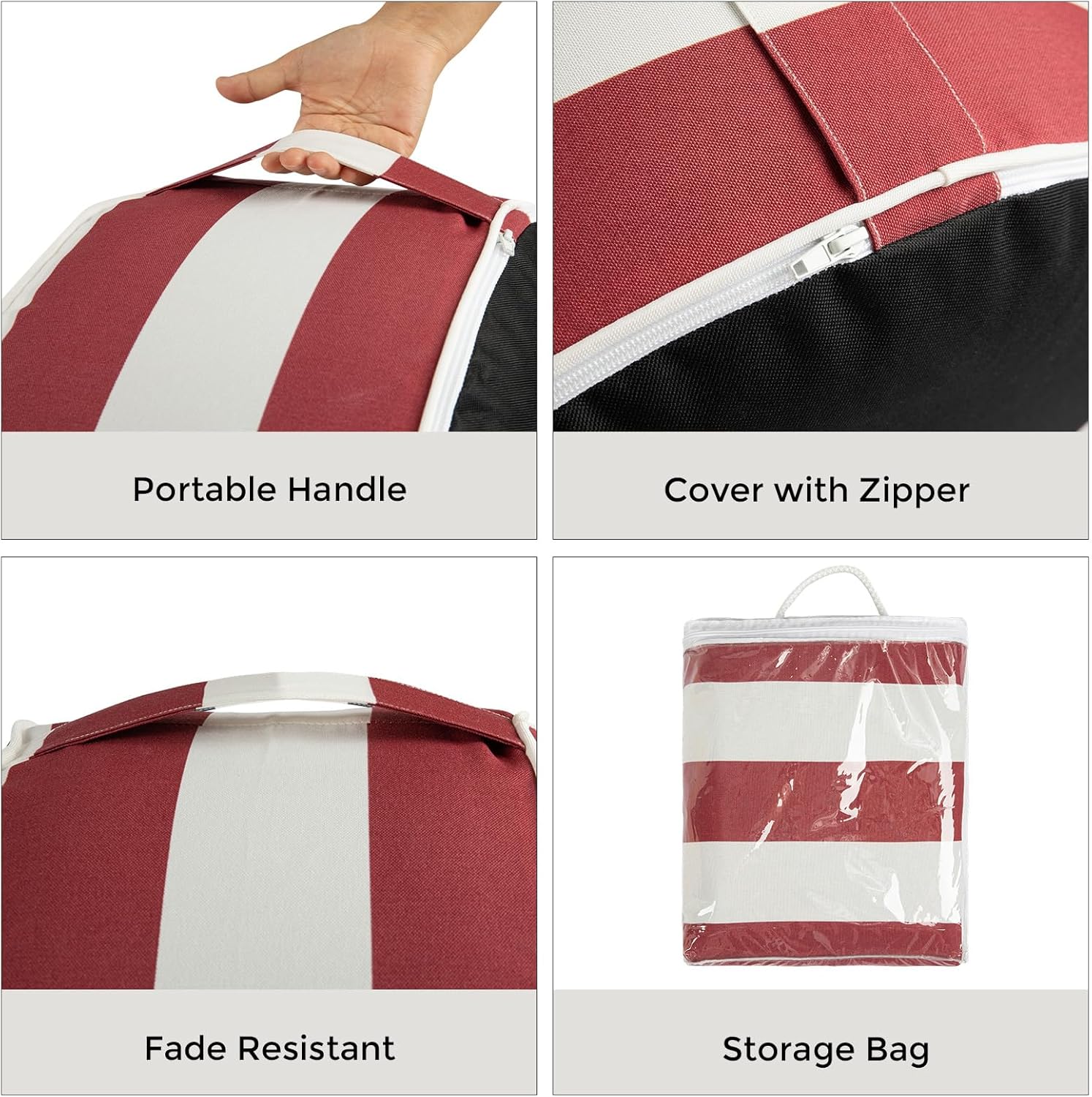FUNHOME Inflatable Outdoor Ottoman with Air Pump,20"x9" Portable Patio Pouf,Water Resistant,Fade-Resistant,Round Blow Up Footrest Stools for Home Garden Camping Travel(Red White)