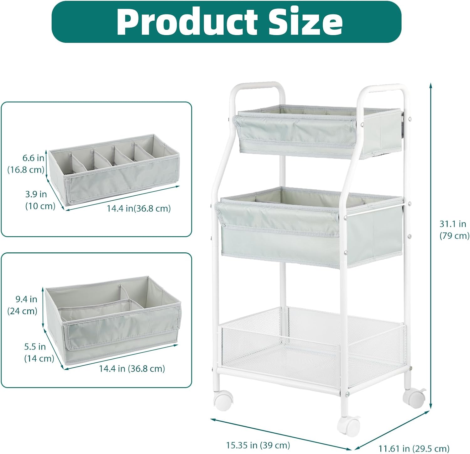 - Premium Materials & Stylish Design: Made with durable fabric and PP plastic, this storage cart is both sturdy and modern and perfect for room organizers and storage or baby nursery essentials.