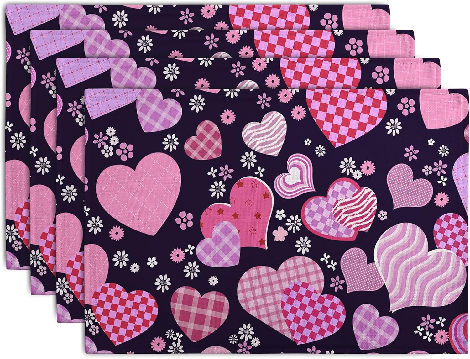 - PERFECTLY SIZE: The Valentine pink black heart placemats set of 4, Each Happy Valentine's Day table placemats is 18Γ12 inch (45cmx30cm) that can exactly fits your needs to use in all kinds of situations