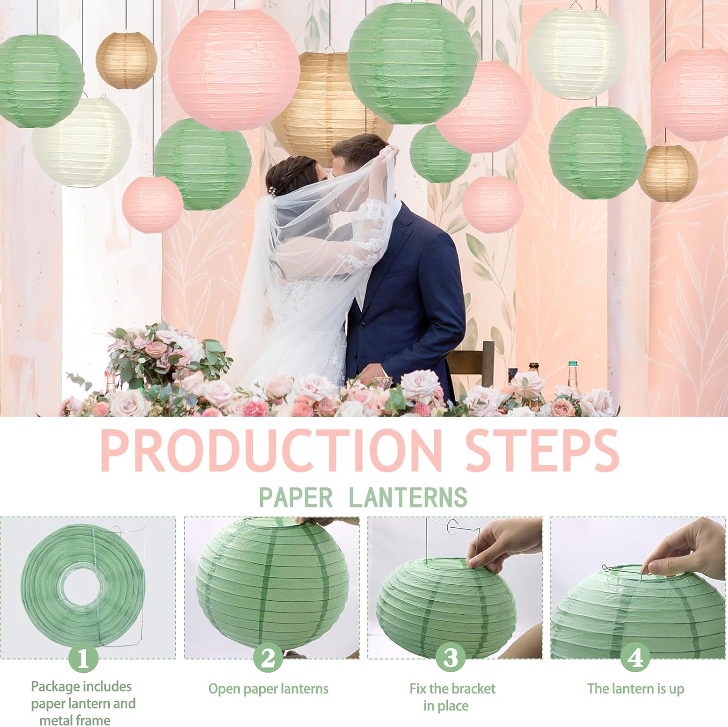 - DURABLE AND REUSABLE - Use a metal frame to open the paper lantern, and it can also be shrunk in the same way. The paper lantern is convenient and simple to store and can be used multiple times. You can decorate on balconies, windows, ceilings, above tables, walls, branches according to the actual situation, or as photo backgrounds and table decorations