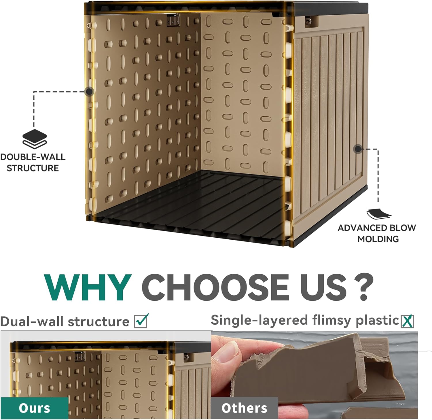 - Double-layer Structure: This deck box features a double-layer design that maximizes durability and strength, while the wood grain texture complements any decor; Made from weatherproof resin thatโs rust-resistant, corrosion-resistant, and maintenance-free