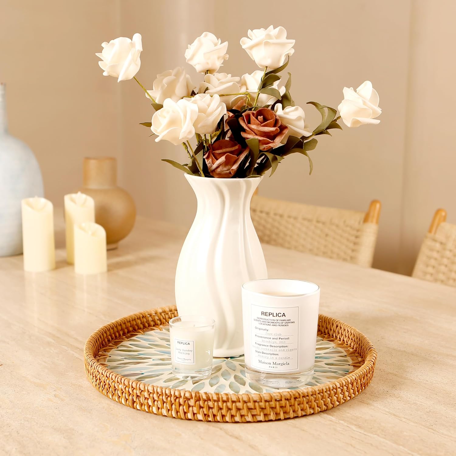 - Handwoven with Care: Each tray is carefully woven by skilled artisans, natural rattan texture and the subtle shine of seashells, reflecting a high level of craftsmanship and attention to detail