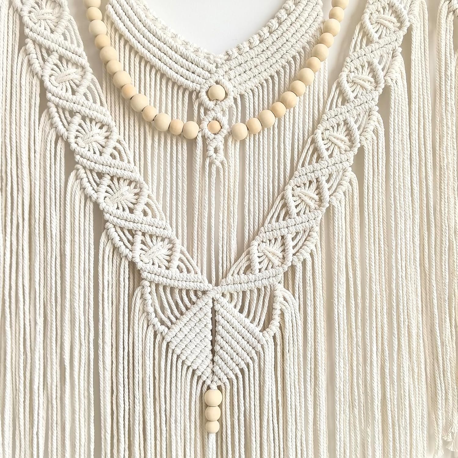 - Material: 100% Pure and Durable 3mm Natural Cotton Cords with Wooden Rod.Ivory Color, Beautiful Unique Pattern, All tapestries are protected by US copyright.