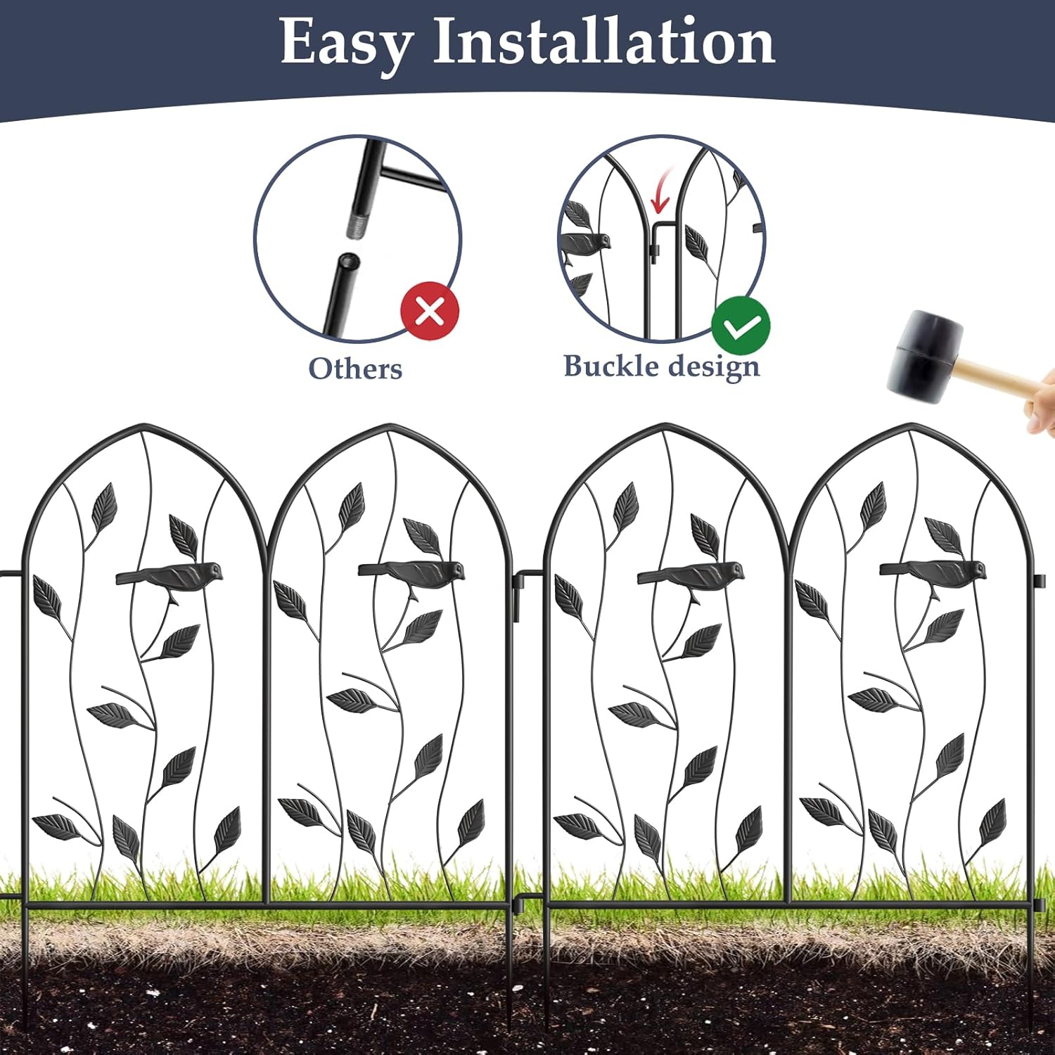 - Easy to Use and Install: No additional tools required, easy to assemble, just insert directly into the soil. Each panel decorative Garden Fence could be connected well by easily interlocked with the ring on the side, These no dig metal fence panels can be flexible enough to be any shape you would like.