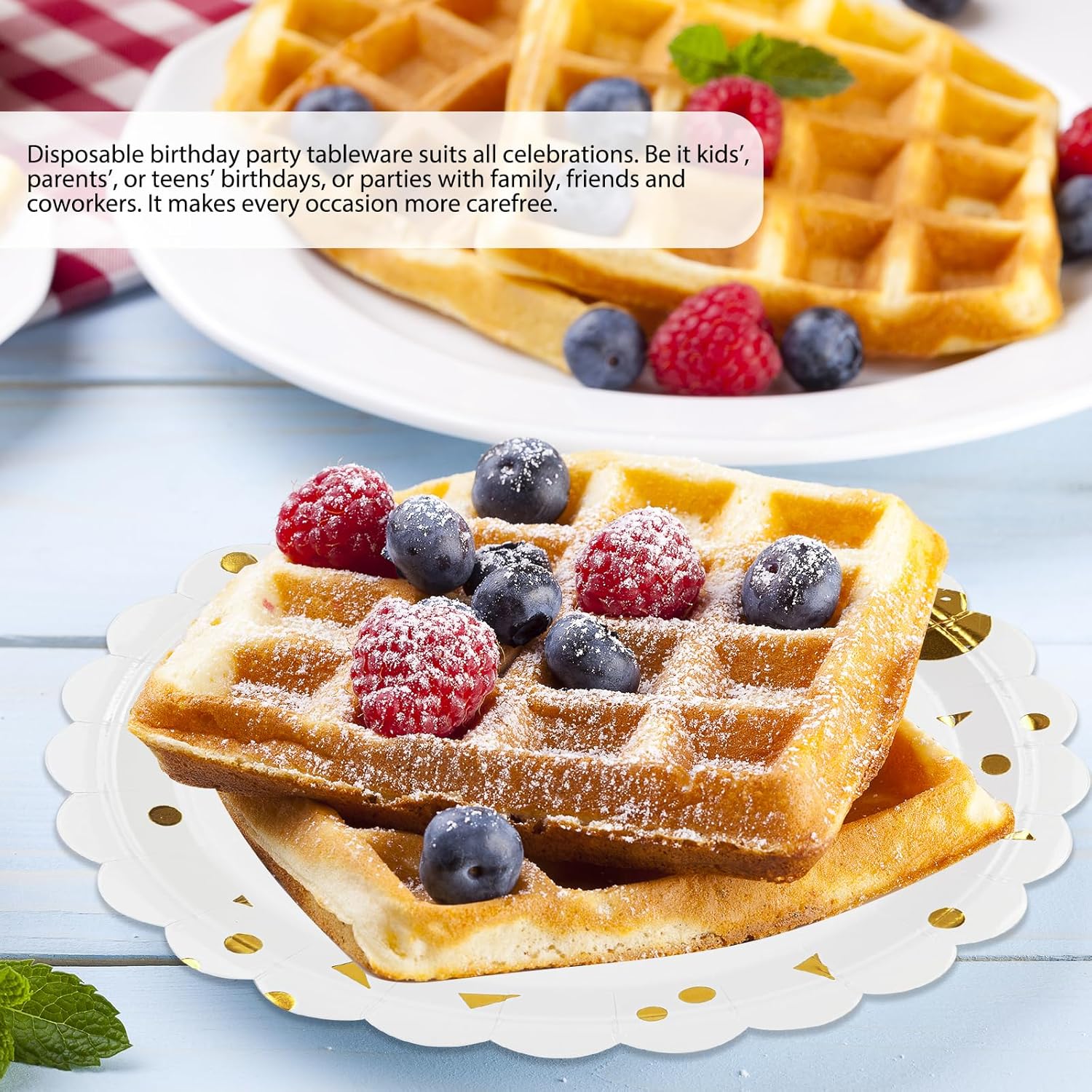 - 【HAPPY BIRTHDAY PLATES】:You will receive 50pcs 7inch white and gold birthday paper plates. Excellent for serving salads, desserts, cakes, etc. Enough to meet your party needs, perfect for your birthday party tableware. Serves up to 50 guests.