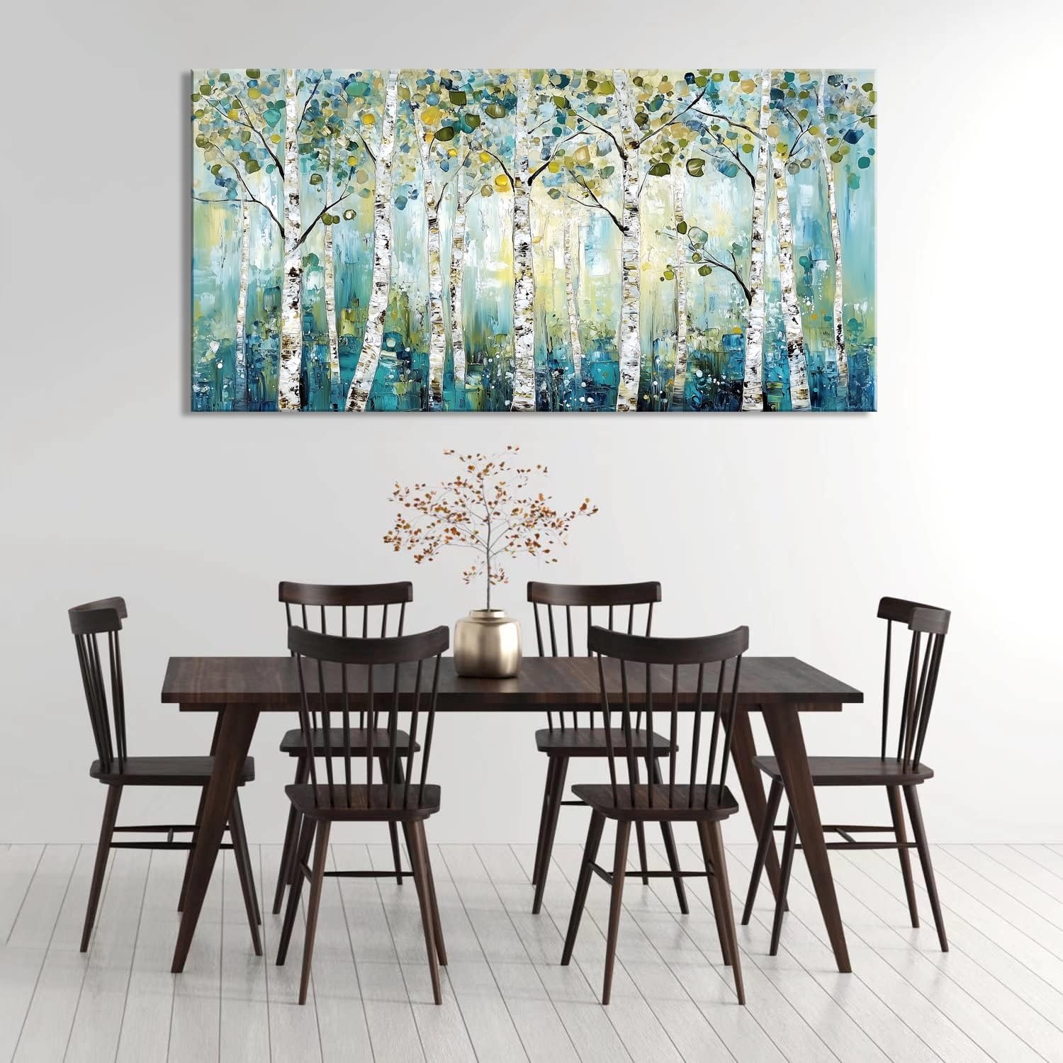 LASMOND Abstract Teal Grove Canvas Paintings Prints Modern Tree Wood Artwork Decor Wall Art for Living Room Bedroom Offices (46x23 Inches)