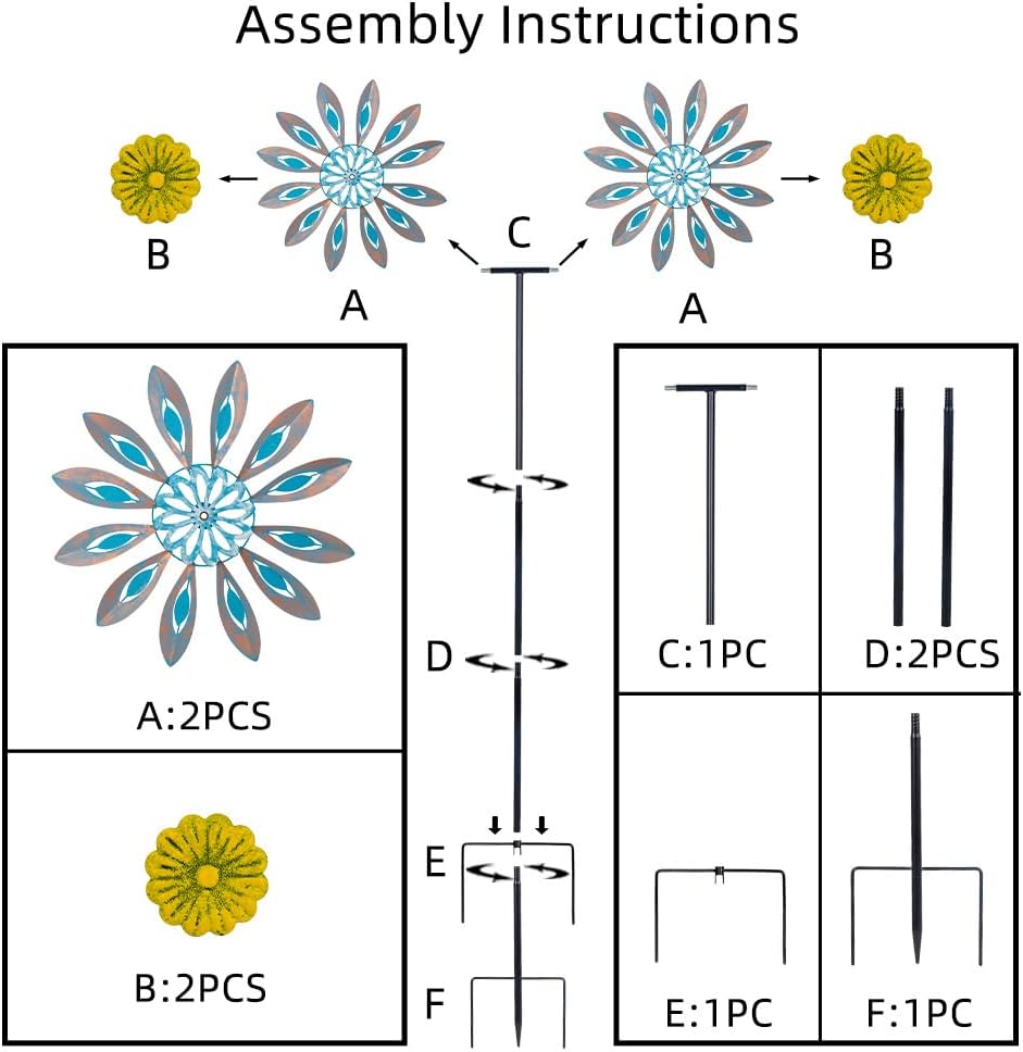 - Friendly Installation:This outdoor wind spinners is very friendly for first time users, no extra tools are needed, just follow the instructions and install it so you can enjoy your happy yard life faster