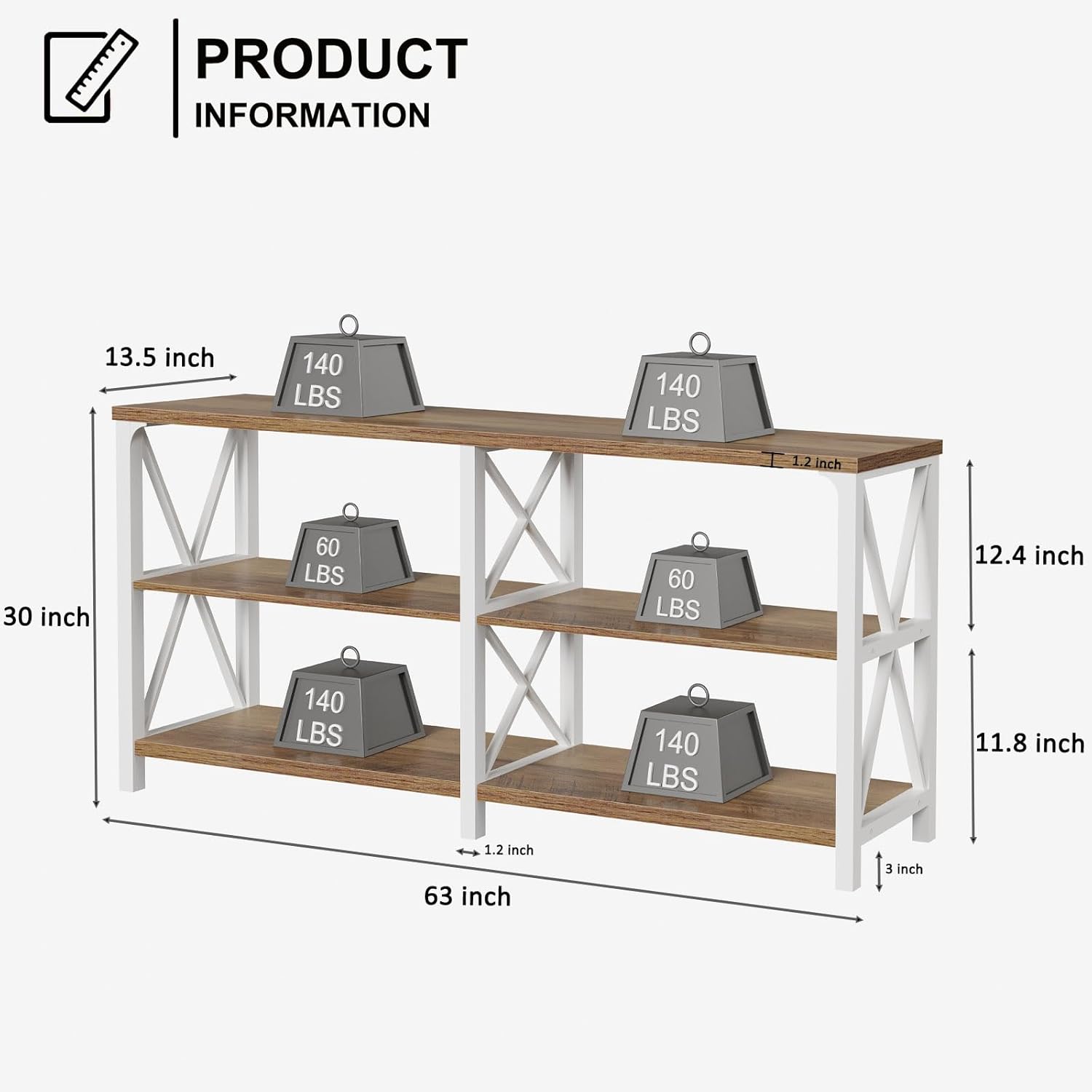 - Color : White and Rustic Oak