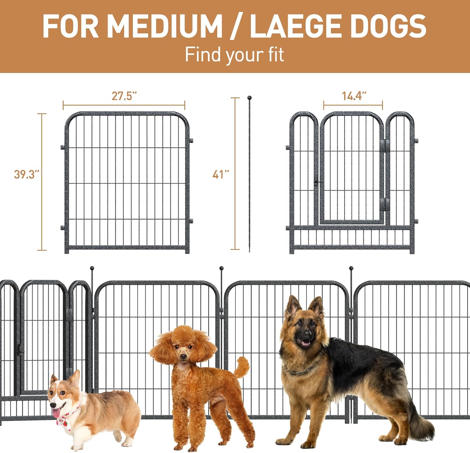 Metal Dog Playpen, 40 Inch Height 16 Panels, Large Dog Fence for Large/Medium/Small Dogs Indoor & Outdoor Bliss, Perfect Dog Pen for Camping, Yard, and RV | Black-Silver