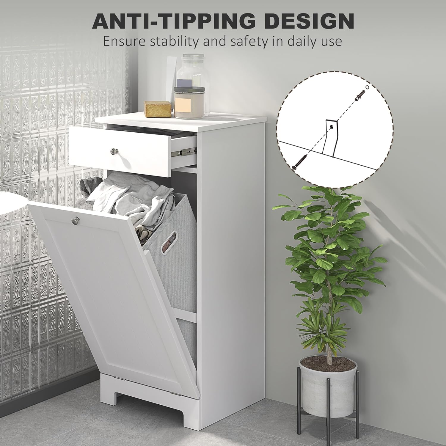- Safety First: Our hidden laundry hamper cabinet features an anti-tipping design to prevent it from tipping over and enhances stability, ensuring safety for your home