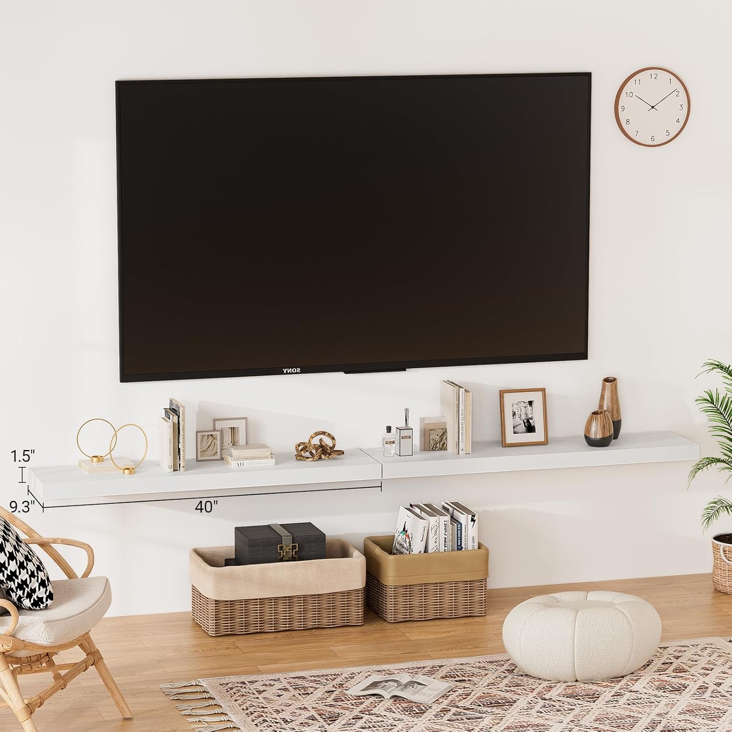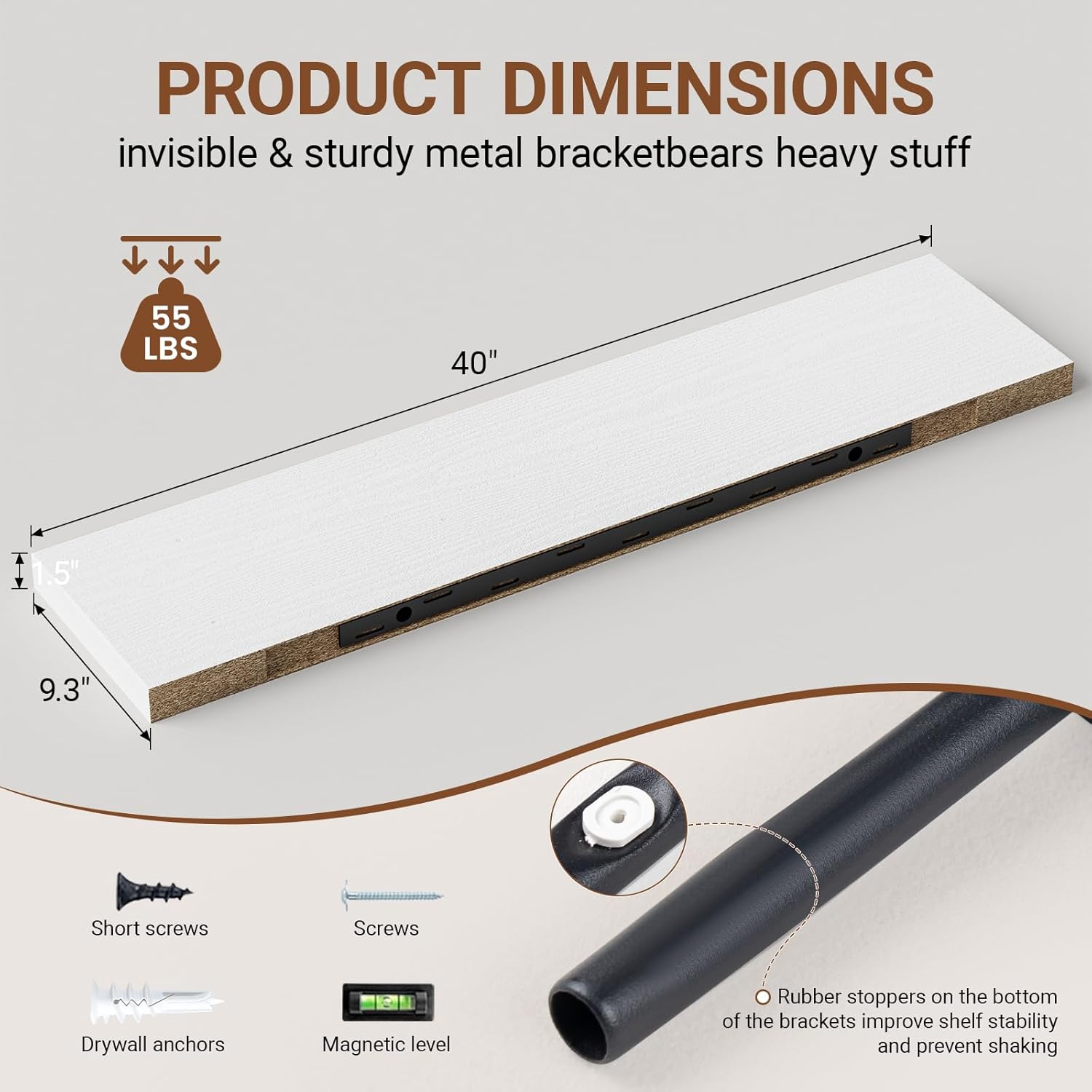 - ăModern Rustic LookăOur white floating shelves for wall are made from durable engineered wood,which blends well with modern and rustic farmhouse wall decor alike.The 40 inch floating shelves is available in colors & sizes,perfect for storing books,plants,collectibles,etc..
