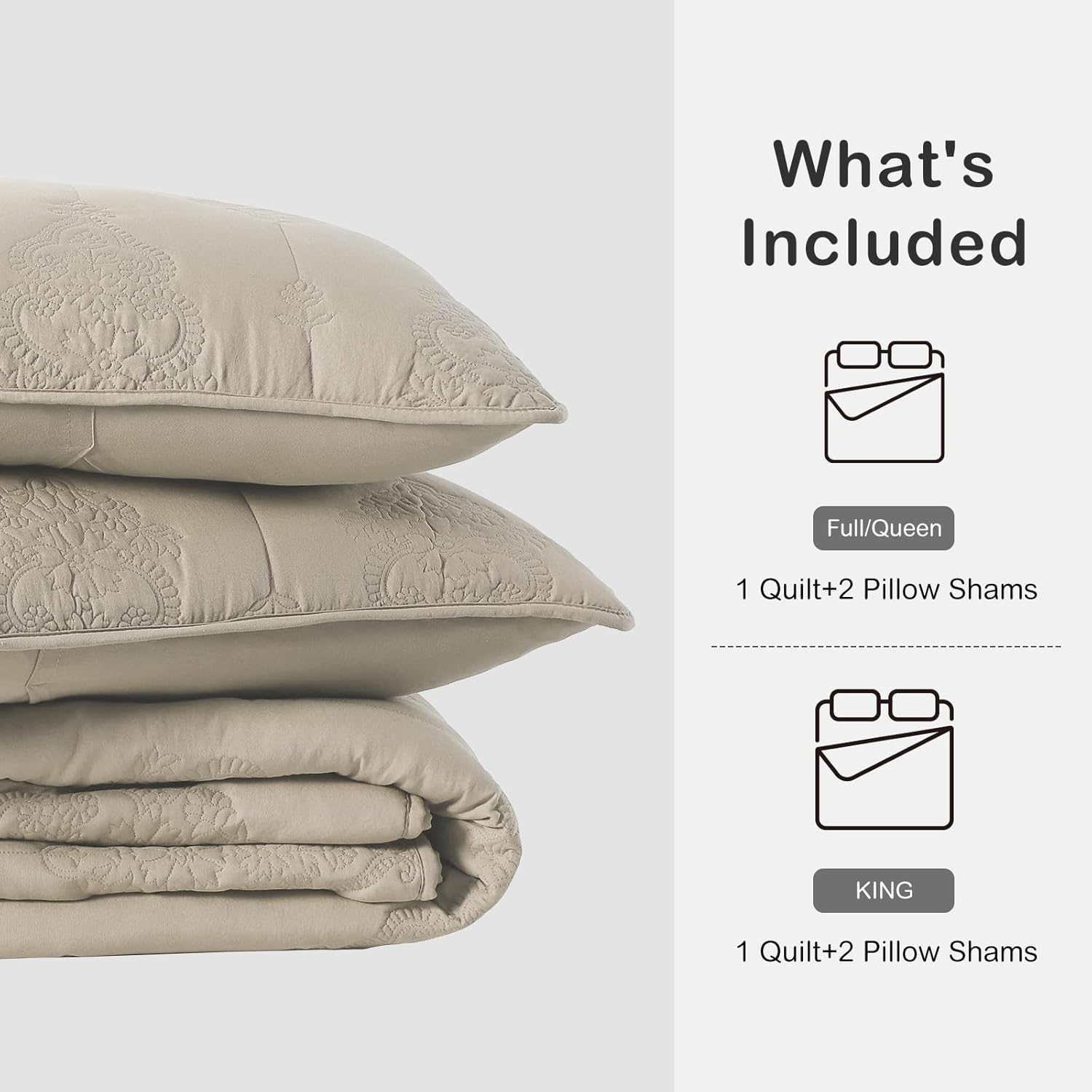 HORIMOTE HOME Khaki Quilt King Size Floral Quilt Bedspread Lightweight Soft Pre-Washed Microfiber Bedcover, 3 Pieces Thin Comforter Bed Cover Bedding Set for All Season