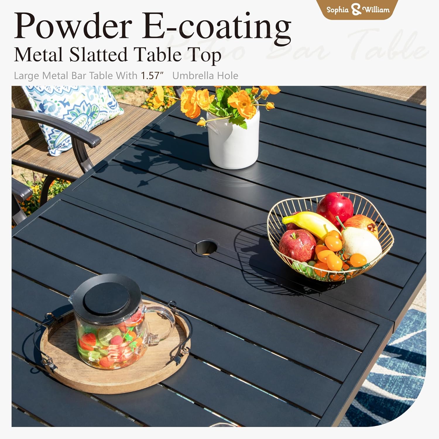 - 【Barheight Patio Table and Chairs】Combines ergonomic high back design with seamless swivel functionality, this bar set provides a stylish and elevated seating option that adds flair to any space. Patio bar table features a classic and neat tabletop with 1.57 umbrella hole
