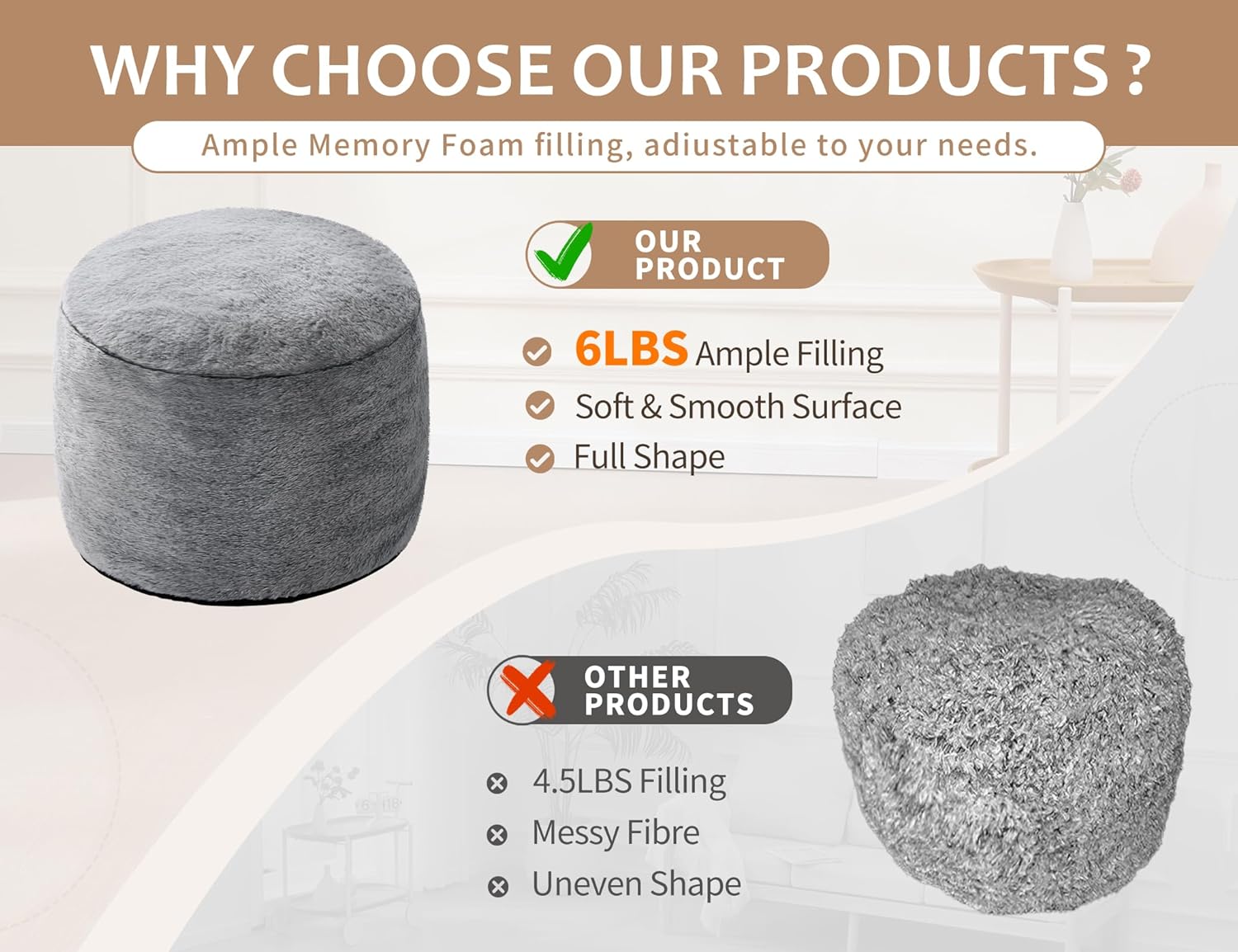 - Service of Round Pouf Ottoman: The nesting ottoman's filling is compression packed for ease of shipping, please pat, shake and knead the boucle ottoman's padding after putting on the plush pouf cover round and wait 48 to 72 hours for the stools to fully expand. If you are not satisfied with this round storage ottoman for any reason, please contact us.