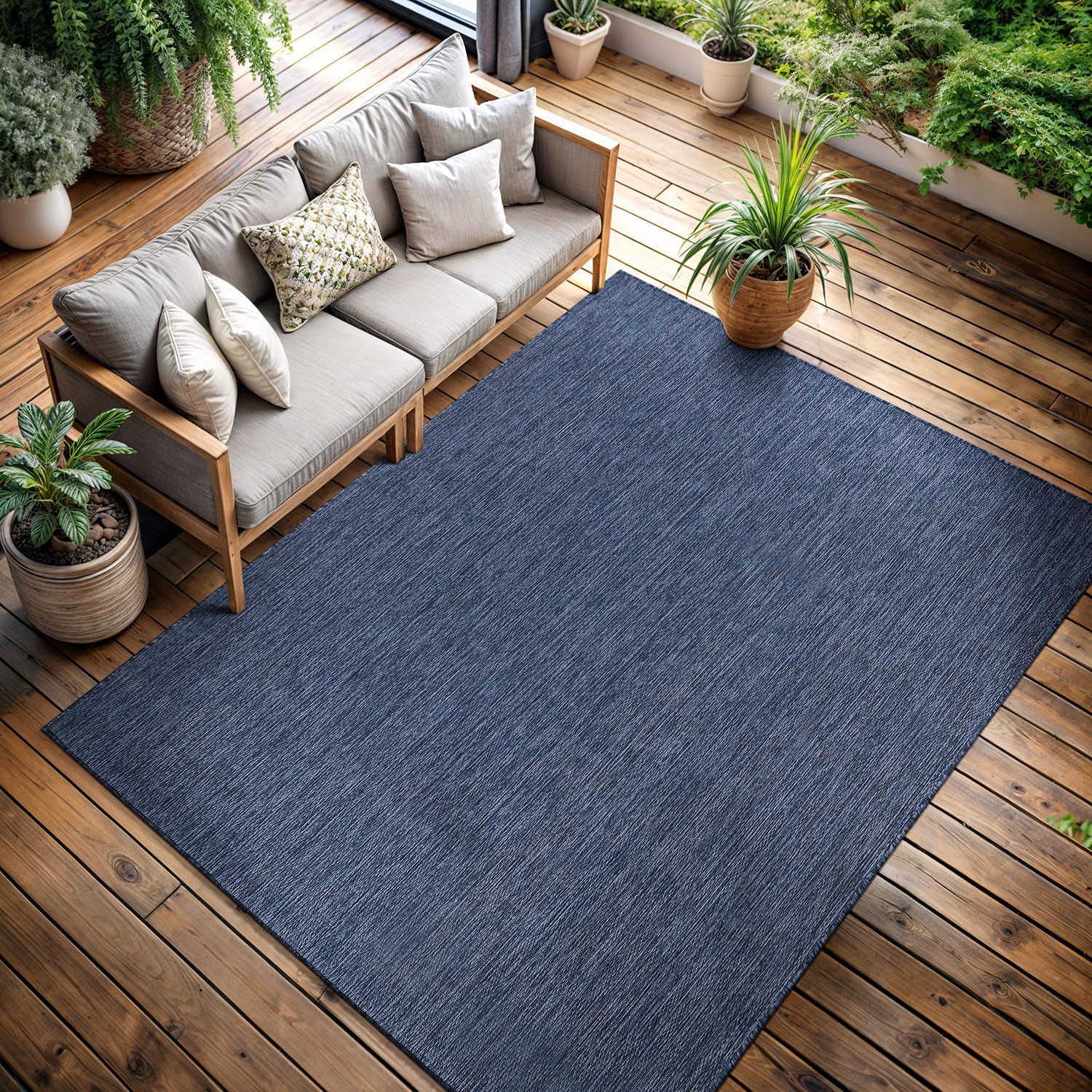 CAMILSON Outdoor Rug 10x14 Modern Area Rugs for Large Indoor and Outdoor Patios and Porches - Waterproof, Washable, Non-Shedding, Easy-to-Clean Outside Carpet (10 x 14, Solid - Navy Blue)